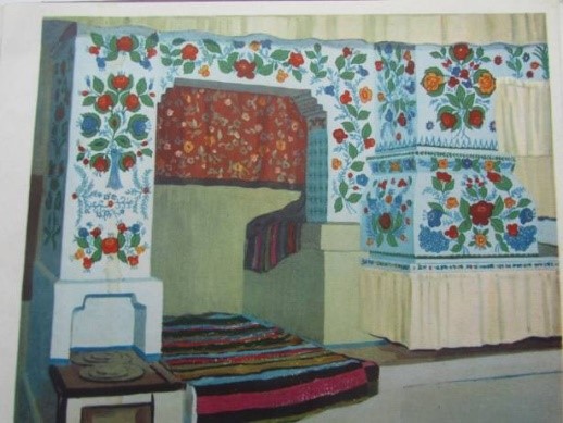 Розпис печі. Одеська область, 1958 рік Зображення з сайту: https://ocnt.com.ua/tradiciї-dekorativnogo-rozpisu-zhitla-v-kulturax-narodiv-svitu/ |