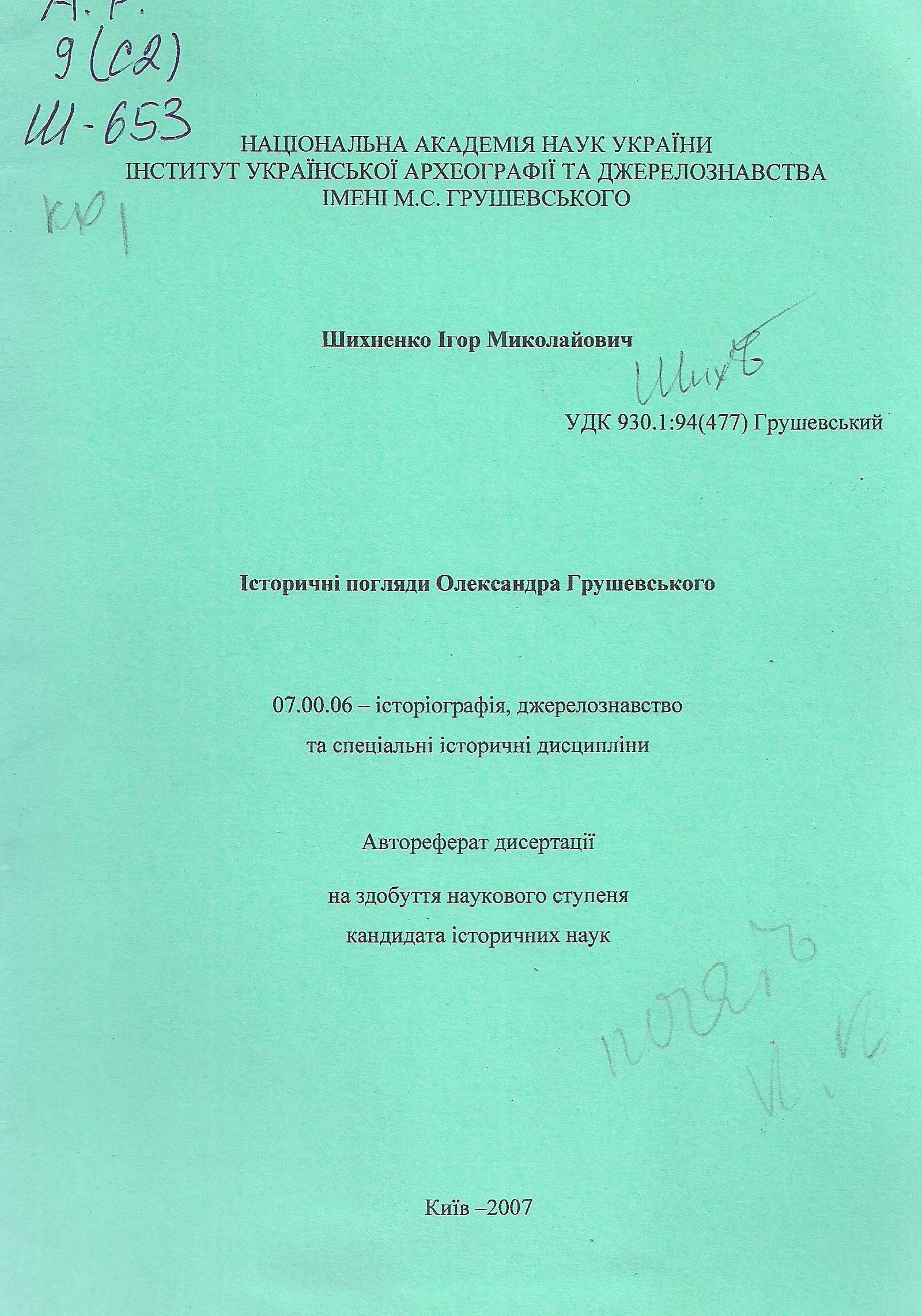 Автор понад 100 наукових праць з історії, історіографії, етнографії, історії літератури, серед яких численні розвідки з політичної і соціальної історії України 16–18 ст., української історіографії 18–19 ст.; серія нарисів про українських письменників 19–20 ст.: "З сучасної української літератури" (в "Літературно-науковому вістнику" та окремо 1909); "Шевченківська література за останні роки" ("Україна", 1917, кн. 1–20). Статті О. Грушевського: "Невільницький цикл Т. Шевченка" ("ЛНВ", 1918, кн. 2–3); "Повісті Куліша з середини 1850 р." ("Україна", 1927, кн. 1–2); "Галицька молодь та Куліш в 1860 р." (ВУАН, Записки історорико-філолологічного відділу, 1928, кн. 20) та ін.