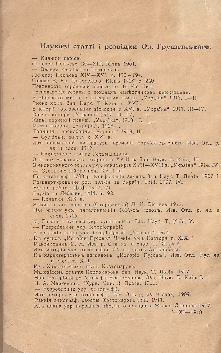 О. Грушевський написав й надрукував у цей період ряд статей, зокрема, "Український народний університет", "Стежки і шляхи української науки", "Наші наукові потреби", "Наші наукові завдання", "Бібліотечні справи" та інші, в яких критично оцінюючи стан культурно-наукового життя українства за часи Російської імперії, обґрунтовував шляхи розбудови української національної науки, обстоював необхідність її незалежного і самодостатнього розвитку.