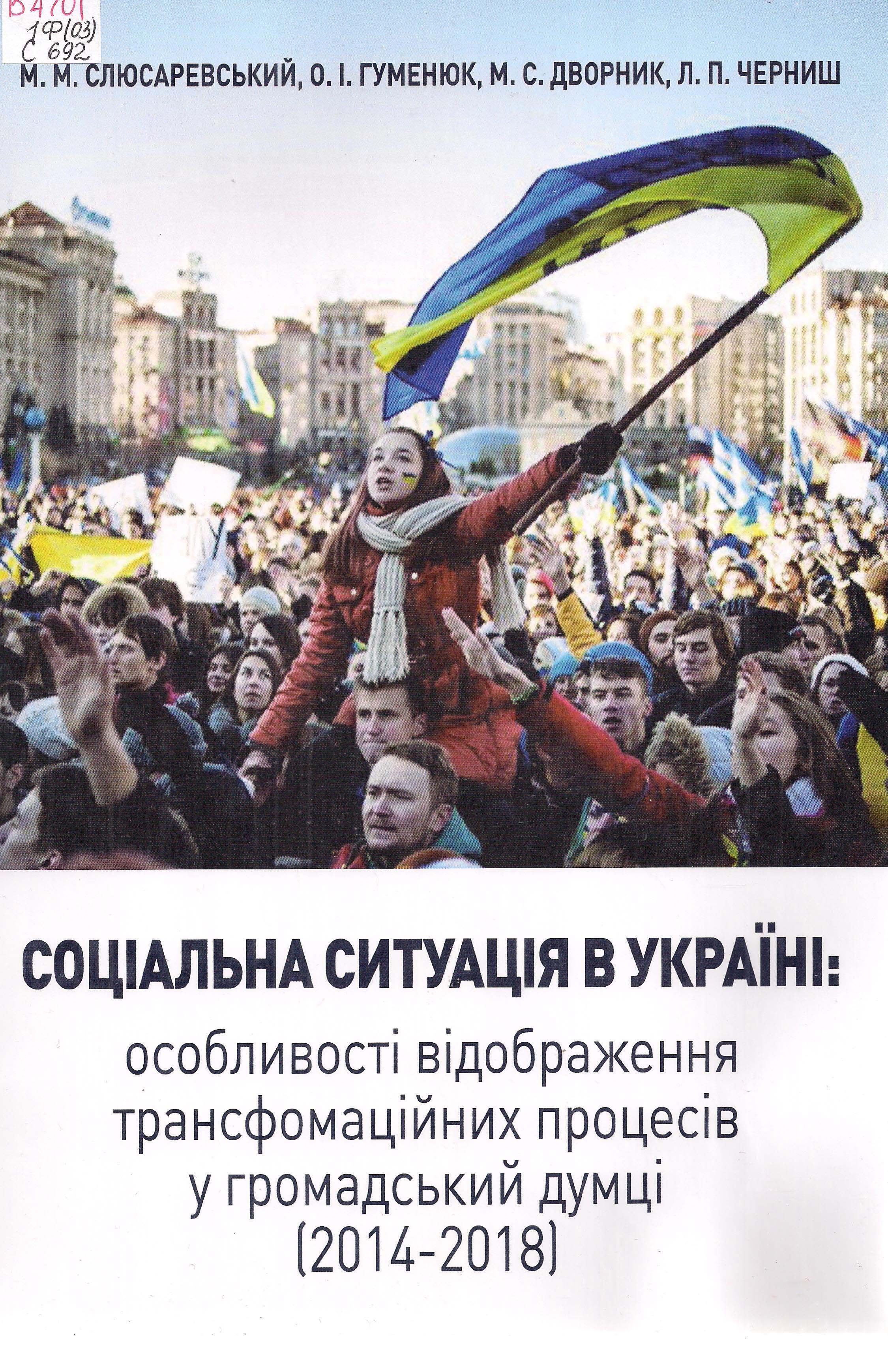 Соціальна ситуація в Україні: особливості відображення трансформаційних процесів у громадській думці (2014–2018) : довідник / М. М. Слюсаревський [та ін.] ; НАПН України, Ін-т соціальної та політичної психології. – Київ : Талком, 2019. – 270 с.