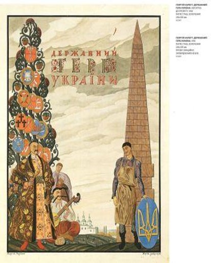 У виданні «Наш Герб: українські символи від княжих часів до сьогодення», Київ: Родовід, 2018, яке вийшло за підтримки Українського культурного фонду, автори Андрій Гречило та Богдан Завітій зазначають, що з великої кількості відомих гербових символів та їх зображень: галицький золотий лев, що спинається на скелю; Київський архистратиг Михаїл, який на зламі ХІХ-ХХ ст. сприймався як герб Наддніпрянської України ; Козак з мушкетом із часів Гетьманщини, який ХVІІІ ст. трактували як герб і ставили на печатках, але як національно-державний герб України було визначено найглибший за традицією –Тризуб. Розробити малюнки герба та печатки УНР було доручено графікові та архітекторові Василю Кричевському. На проектах В. Кричевського Тризуб оточено стилізованим оливковим вінком, що символізувало мирну політику УНР. Затверджений державним гербом України Тризуб з’являється на грошових знаках і інших державних паперах. Над виготовленням проектів банкнот, поштових марок, гербових, консульських і театральних марок, водяних знаків, карт працювало понад 20 художників, зокрема Георгій Нарбут, Василь Кричевський, Михайло Бойчук, Антін Середа, Олександр Богомазов, Григорій Золотов та інші. Форма Тризуба у проектах цих мистців мала дуже різноманітні художні інтерпритації. Але лаконічність та самобутність зображення, історія походження княжого символа – Тризуба – все стало міцним історичним спадковим зв’язком модерної України початку ХХ ст. з величною Київською Руссю ІХ–ХІ ст. і надавало великого творчого злету.