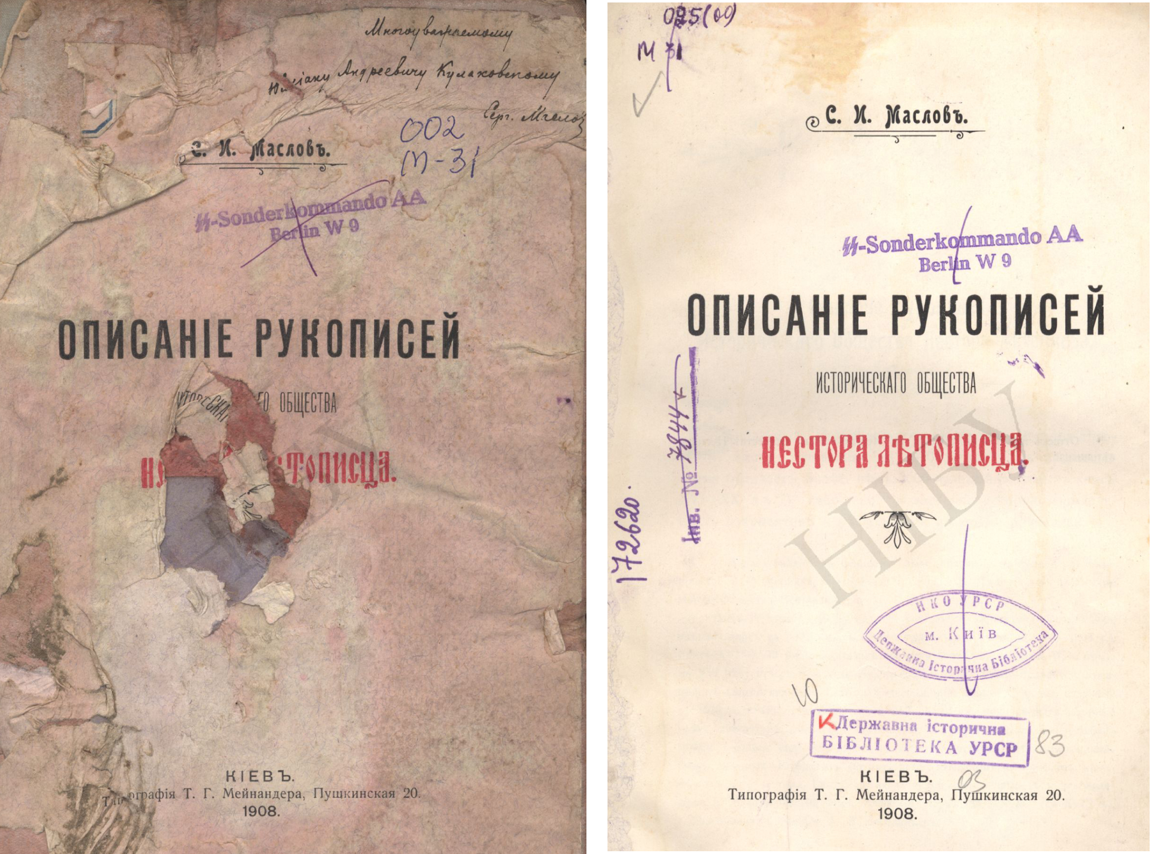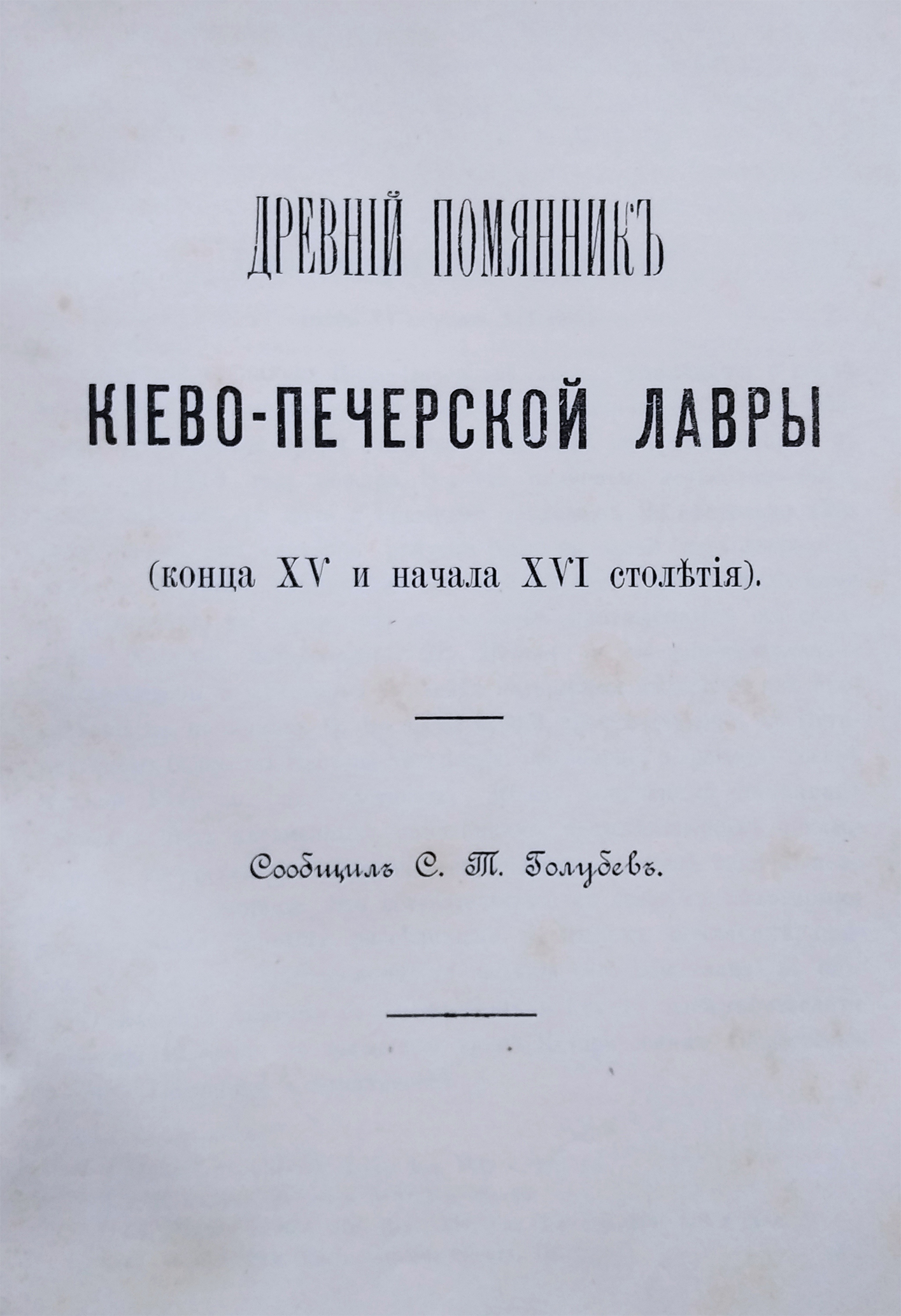 На примірнику наявний екслібрис історика церкви, археографа, архівознавця, багаторічного скарбника ІТНЛ Степана Тимофійовича Голубєва (1848–1920).
