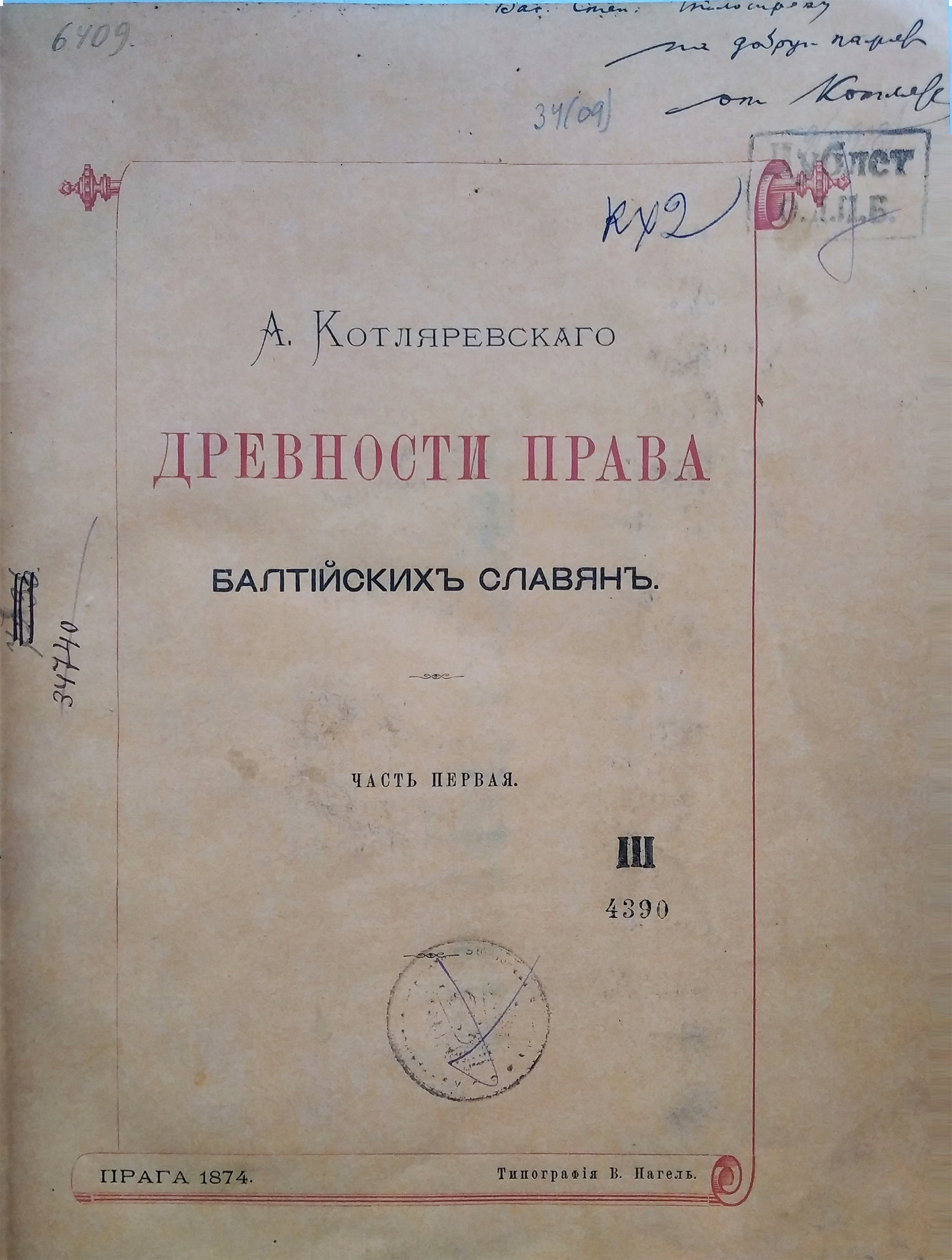 Брошюра була подарована автором – істориком-славістом, літературознавцем, учнем О. О. Котляревського дійсним членом ІТНЛ Андроником Степовичем – «Уважаемому Николаю Павловичу Дашкевичу».
