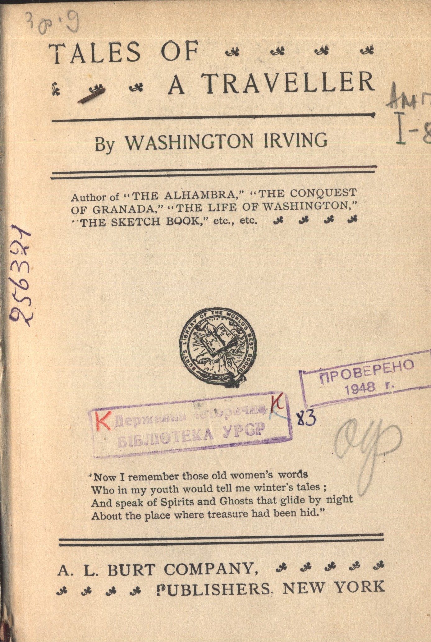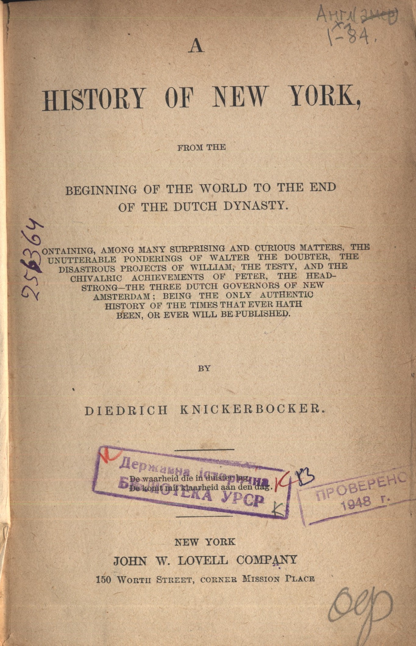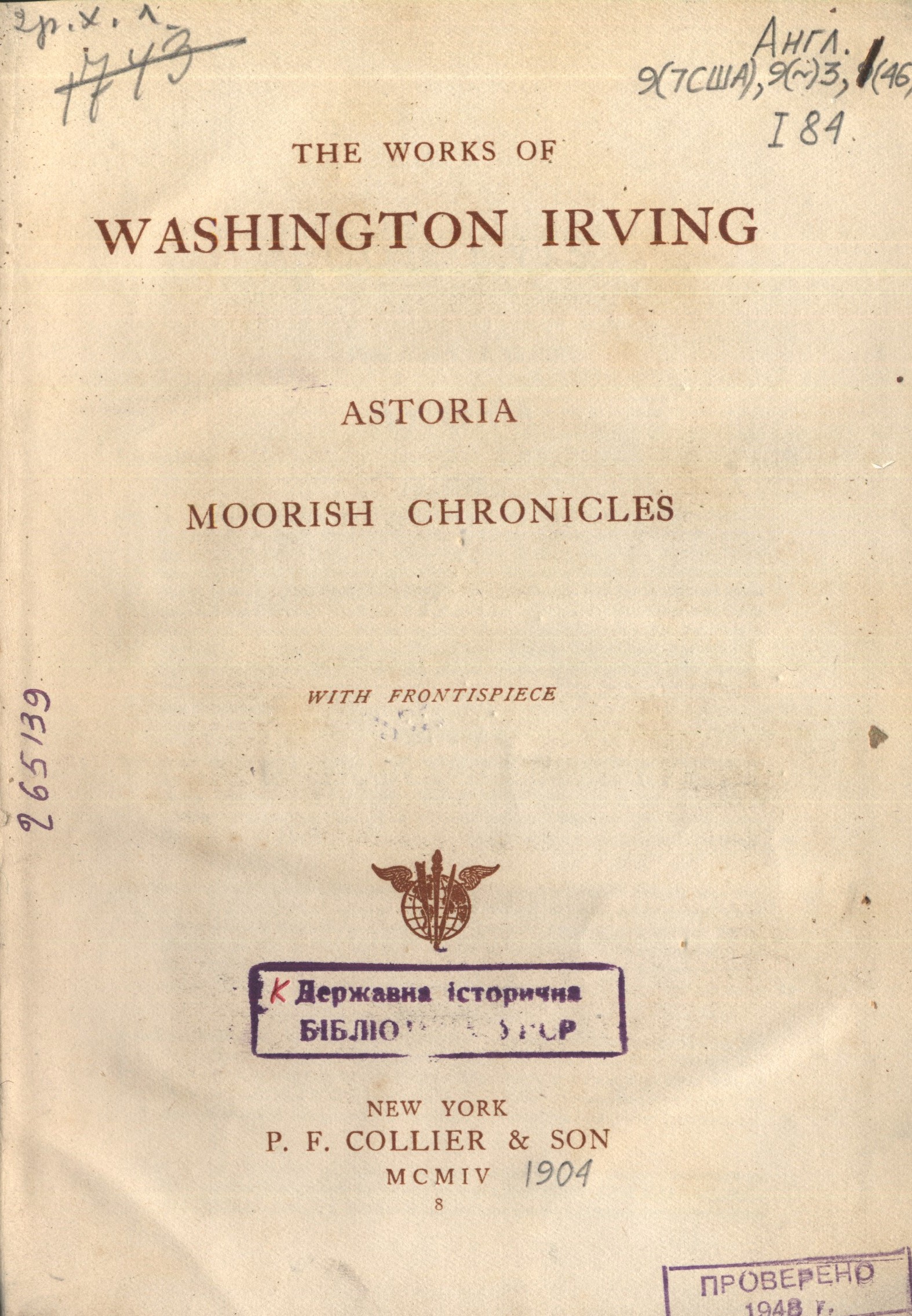 Brooks, Van Wyck. The World of Washington Irving [Текст] / V. W. Brooks. - Philadelphia : The Blakiston Company, 1944. - 495 p. - Англ.