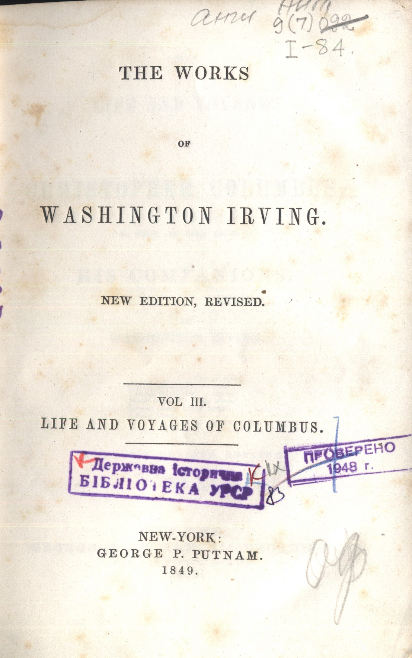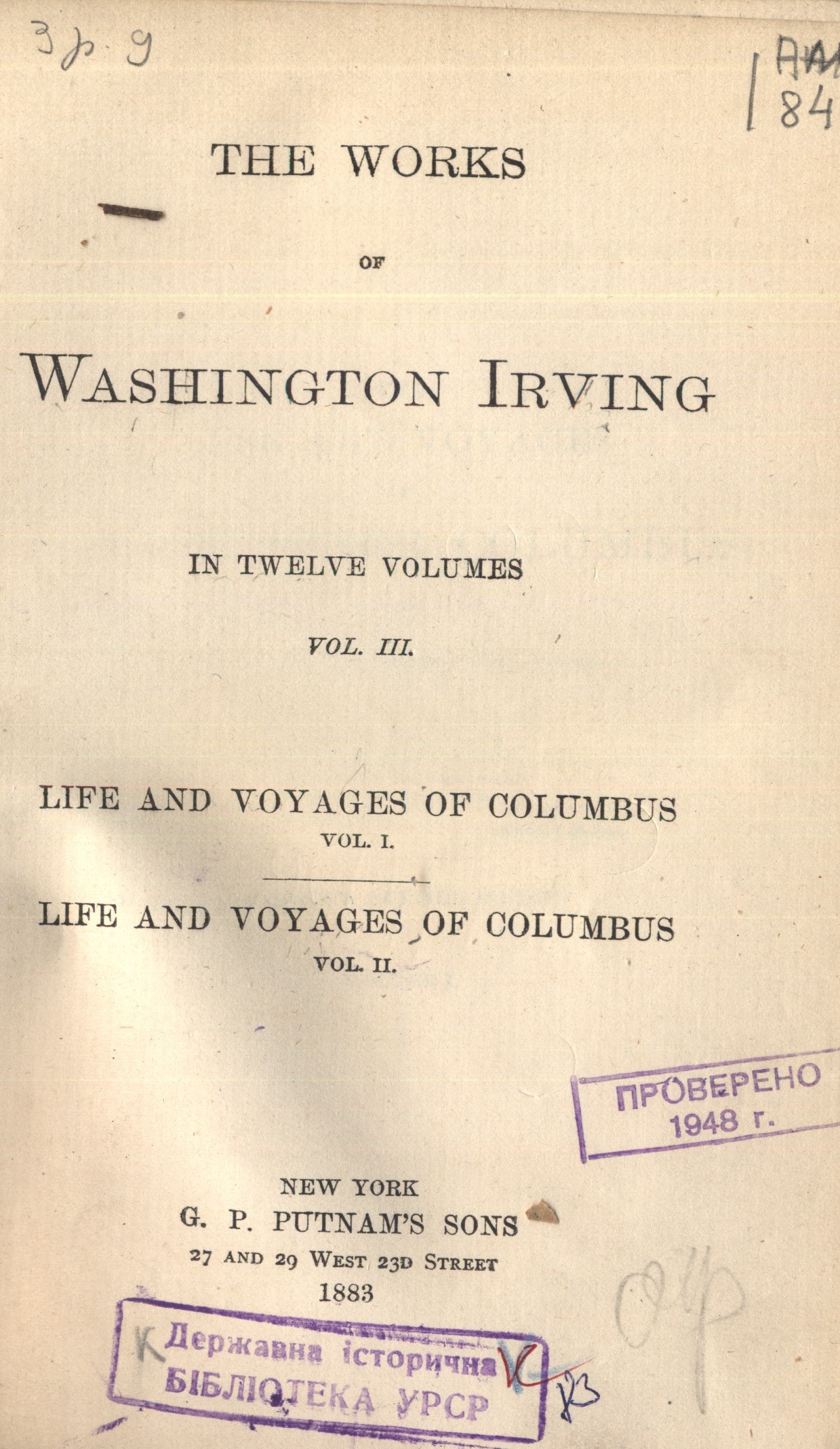 З біографією Xристофора Колумба, написаною Ірвінґом, був знайомий Тарас Григорович Шевченко, про що він згадує у повісті «Художник».