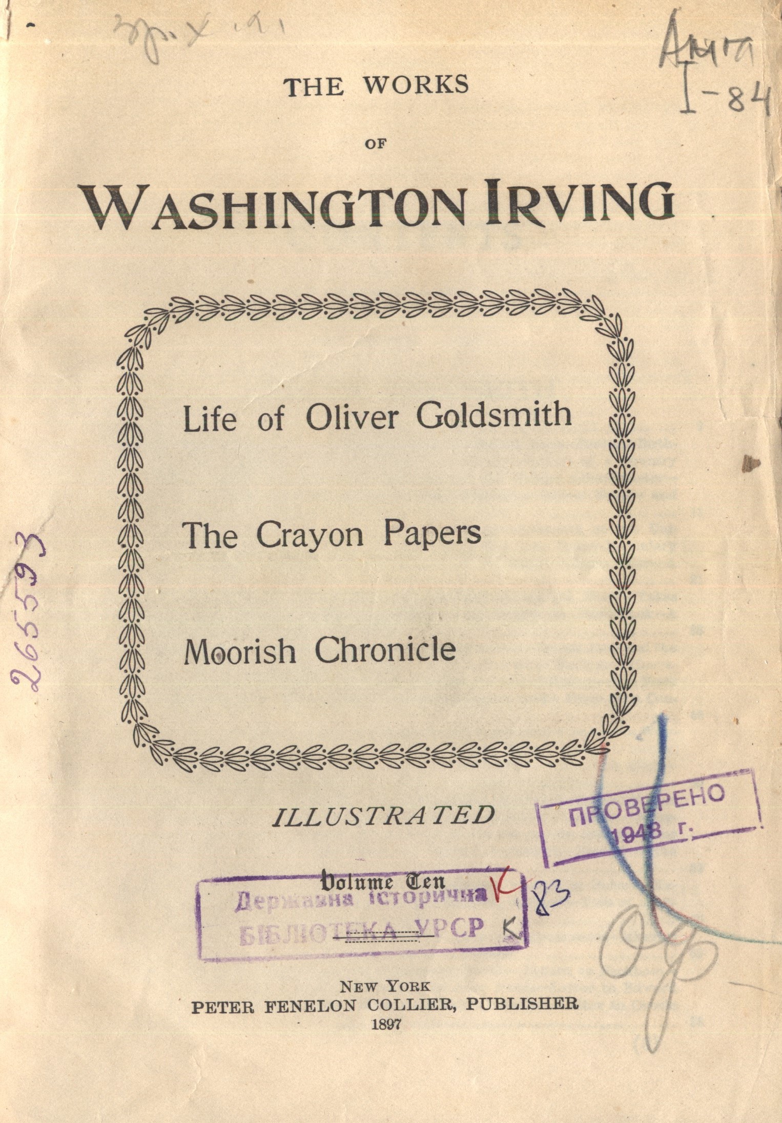 Goldsmith, Oliver. A biography by Washington Irving [Текст] / O. Goldsmith. - New York : [s. n.], 1904. - 303 p. - Англ.