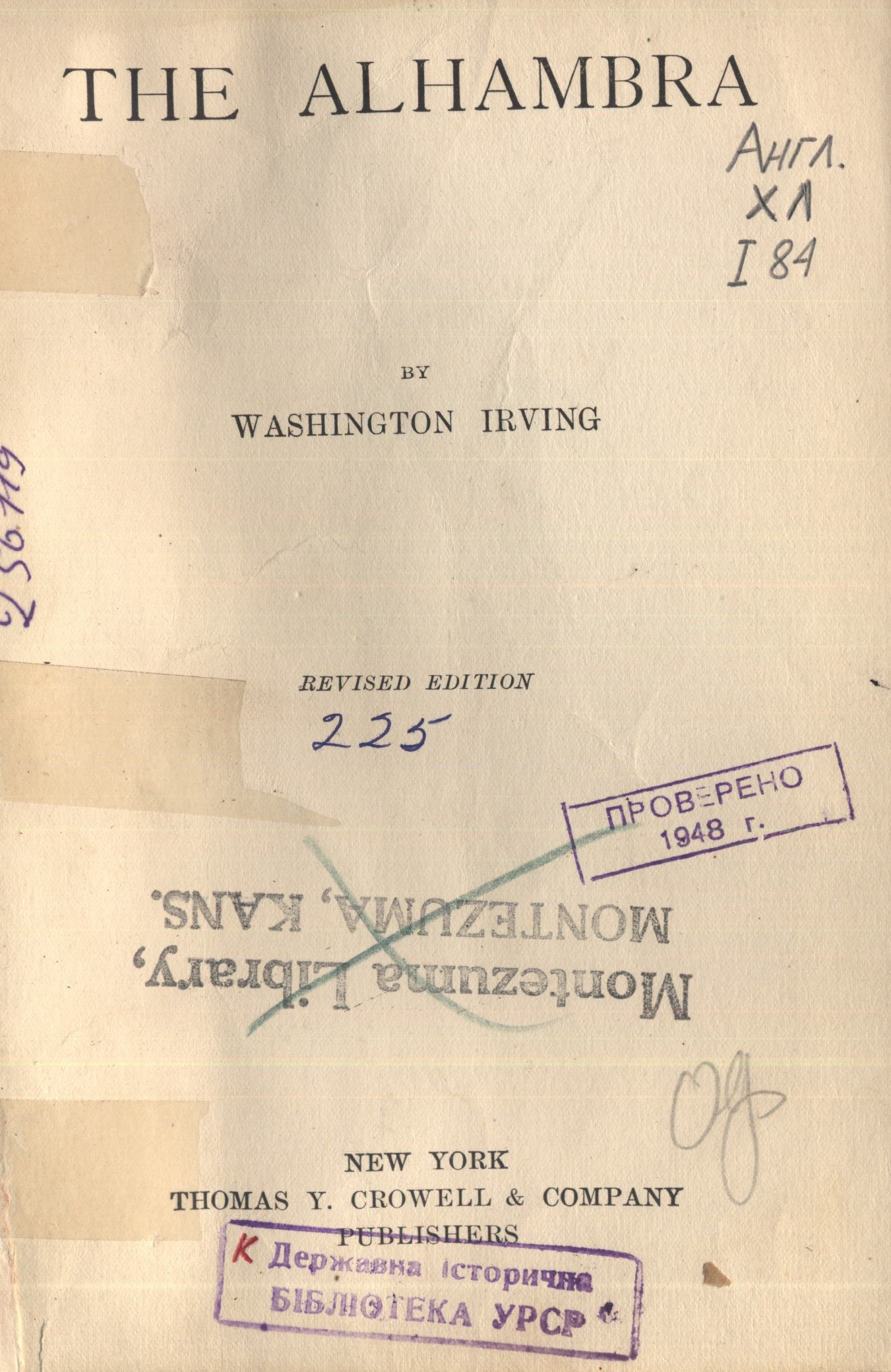 До уваги користувачів пропонуємо книжкову виставку до 240-річчя від дня народження Вашінґтона Ірвінґа (Irving, Washington; 1783 —1859), американського письменника, есеїста, біографа та історика першої половини XIX століття з фонду відділу документів іноземними мовами.