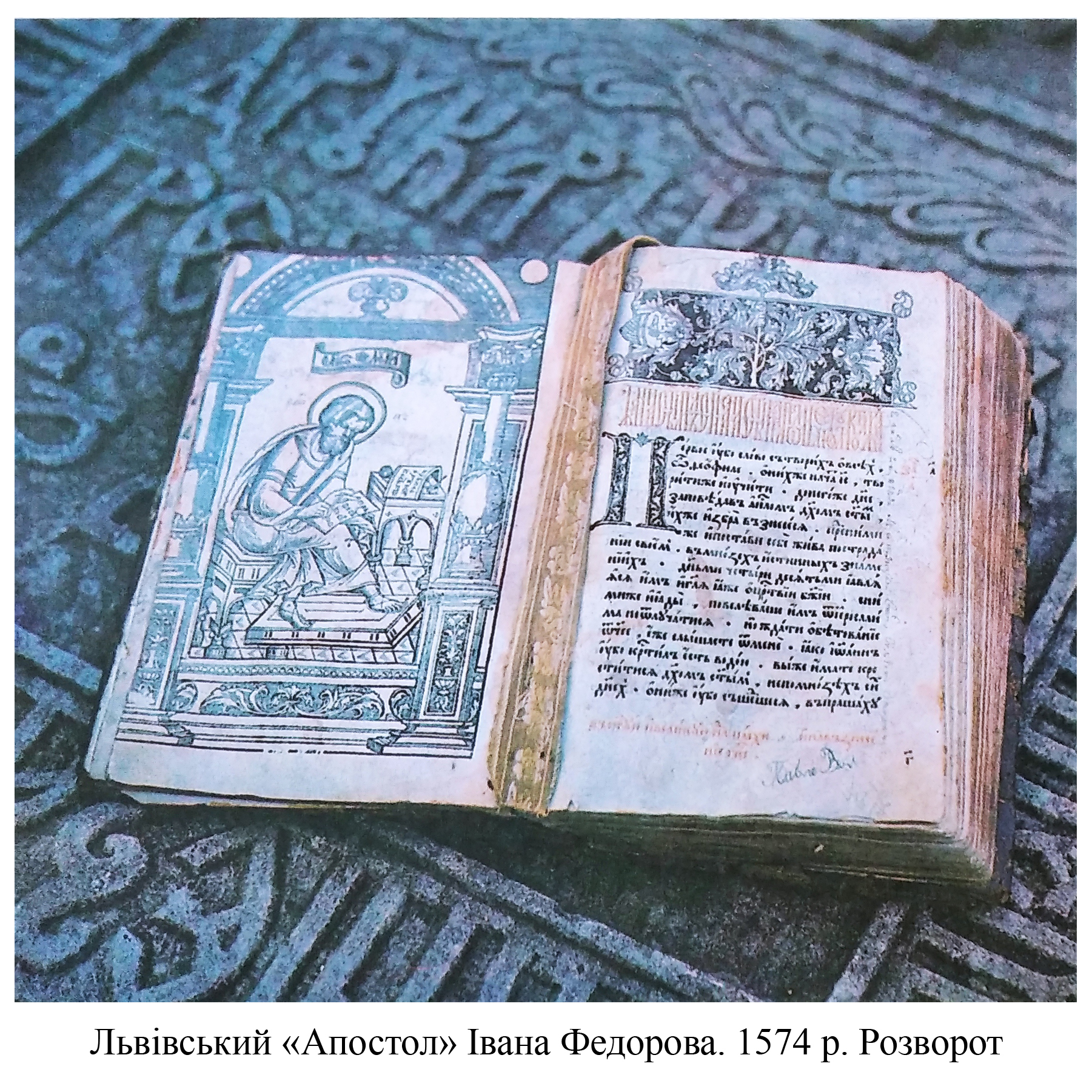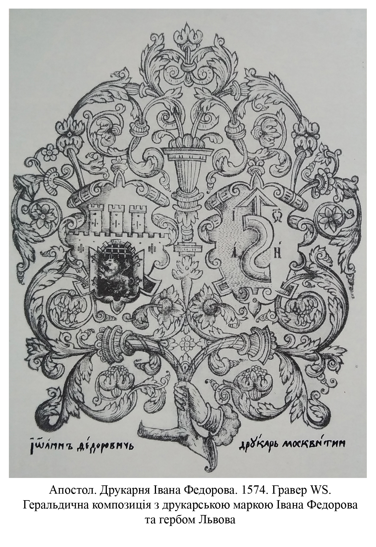 Праця над львівським «Апостолом» тривала майже рік – з 25 лютого 1573 р. по 15 лютого 1574 р. В результаті вийшла книга надзвичайно дбайливо складена і майстерно оформлена. На початку вміщено герб литовського гетьмана Г. Ходкевича в ренесансній архітектурній рамці. На кінцевій сторінці – орнаментальна композиція з гербом Львова (лев у відкритій брамі міського муру з трьома баштами) та друкарським знаком першодрукаря (змійка подібна до віддзеркаленої літери S, із стрілкою вгорі), що нагадує тогочасні «гмерки» – герби ремісників і купців [9, с. 6-7]. На двох сторінкових гравюрах до львівського Апостола – фронтиспісній ілюстрації із зображенням Луки та друкарській марці Івана Федорова – використані монограми з літерами ЛП та WS і зображення різця по дереву. На першому деревориті наявні обидві монограми, на другому – лише монограма WS. Ймовірно, літери ЛП належать львівському художникові Л. Пилиповичу, якому Федоров, можливо, доручив виконати малюнок Луки у кращих традиціях місцевого рукописного мистецтва й іконопису. А монограма WS, можливо, належить граверу Венделю Шарфенберґові з родини краківських друкарів, папірників і граверів [33, с. 368].