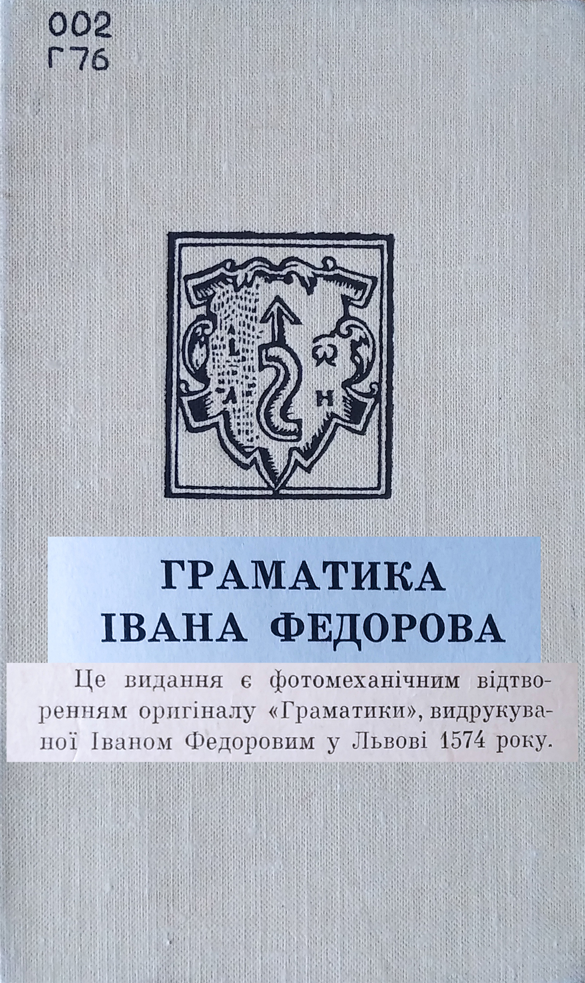 4. Граматика Івана Федорова. – [Фотомеханічне відтворення видання 1574 р.]. – Київ : Дніпро, 1964. – 40 арк.