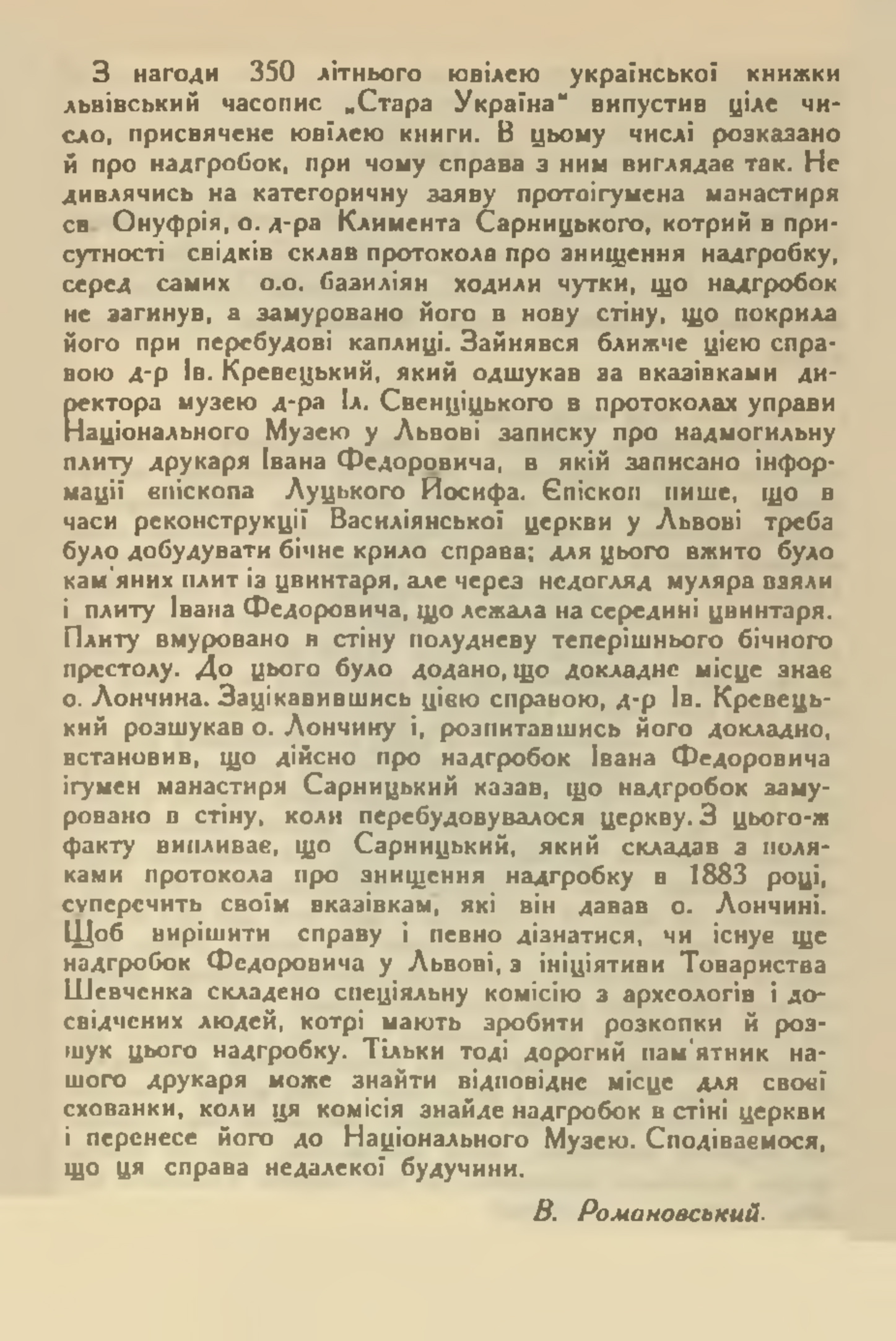 34. Романовський В. Друкар Іван Федорович. Життя його та діяльність [Електронний ресурс] / В. Романовський. – Київ: Український науковий інститут книгознавства, 1925. – 55 с. – Режим доступу : https://heritage.oa.edu.ua/assets/files/romanovs'kyi_drukar.pdf