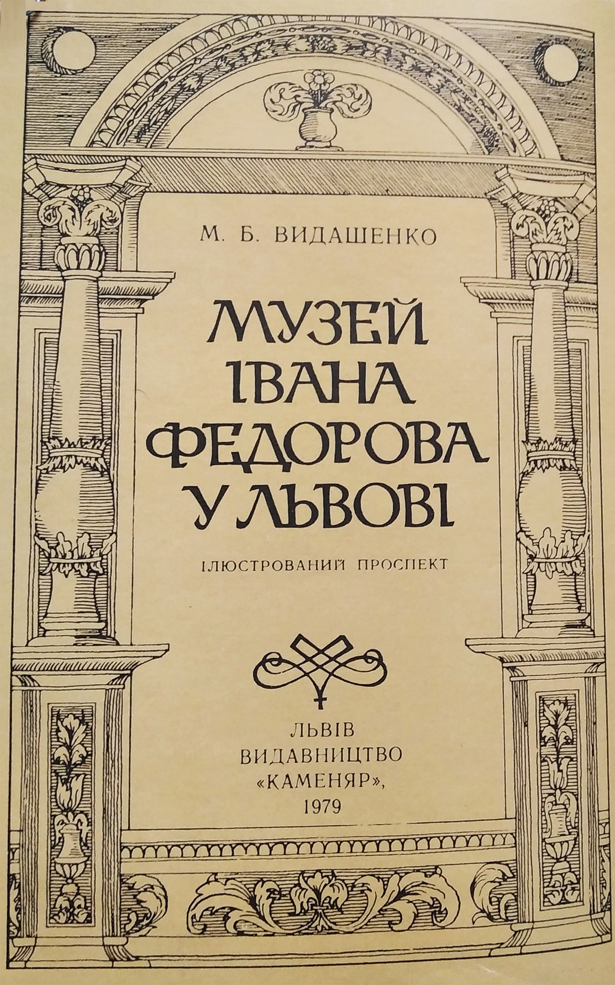 3. Видашенко М. Б. Музей Івана Федорова у Львові : ілюстрований проспект / М. Б. Видашенко. – Львів : Каменяр, 1979. – 128 с.