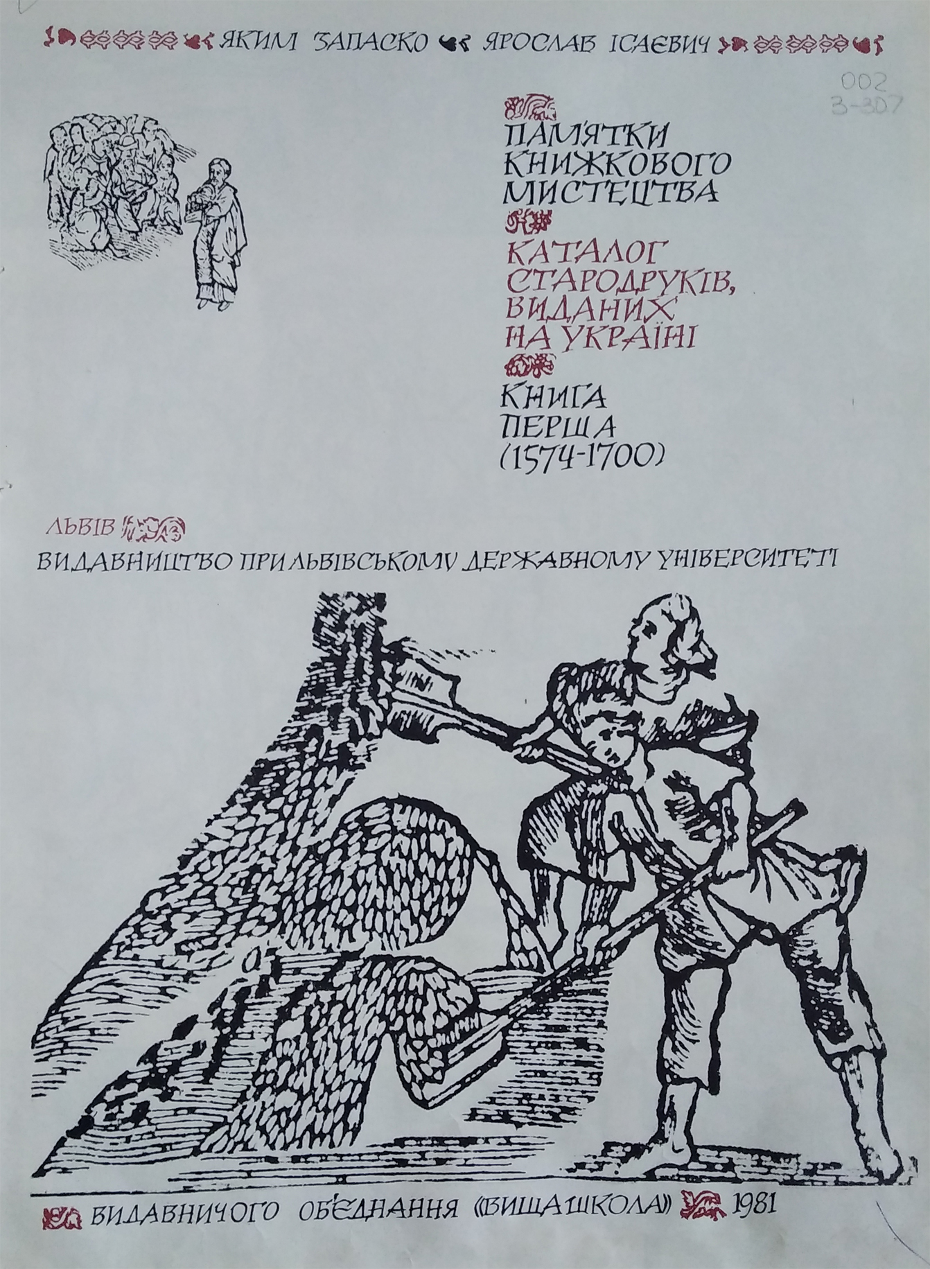 8. Запаско Я. П. Пам'ятки книжкового мистецтва : каталог стародруків, виданих на Україні. Кн. 1. (1574–1700) / Я. П. Запаско, Я. Д. Ісаєвич. – Львів : Вища школа. Вид-во при Львівському ун-ті, 1981. – 135 с.