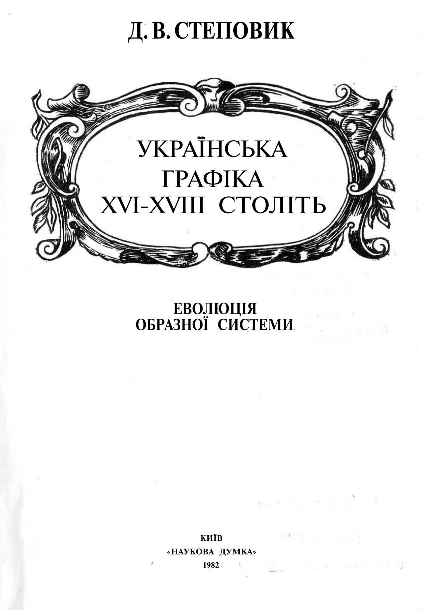 26. Степовик Д. В. Українська графіка XVI–XVIII століть : еволюція образної системи / Д. В. Степовик ; Академія наук Української РСР, Інститут мистецтвознавства, фольклору та етнографії ім. М. Т. Рильського. – Київ : Наукова думка, 1982. – 333 с. : іл.