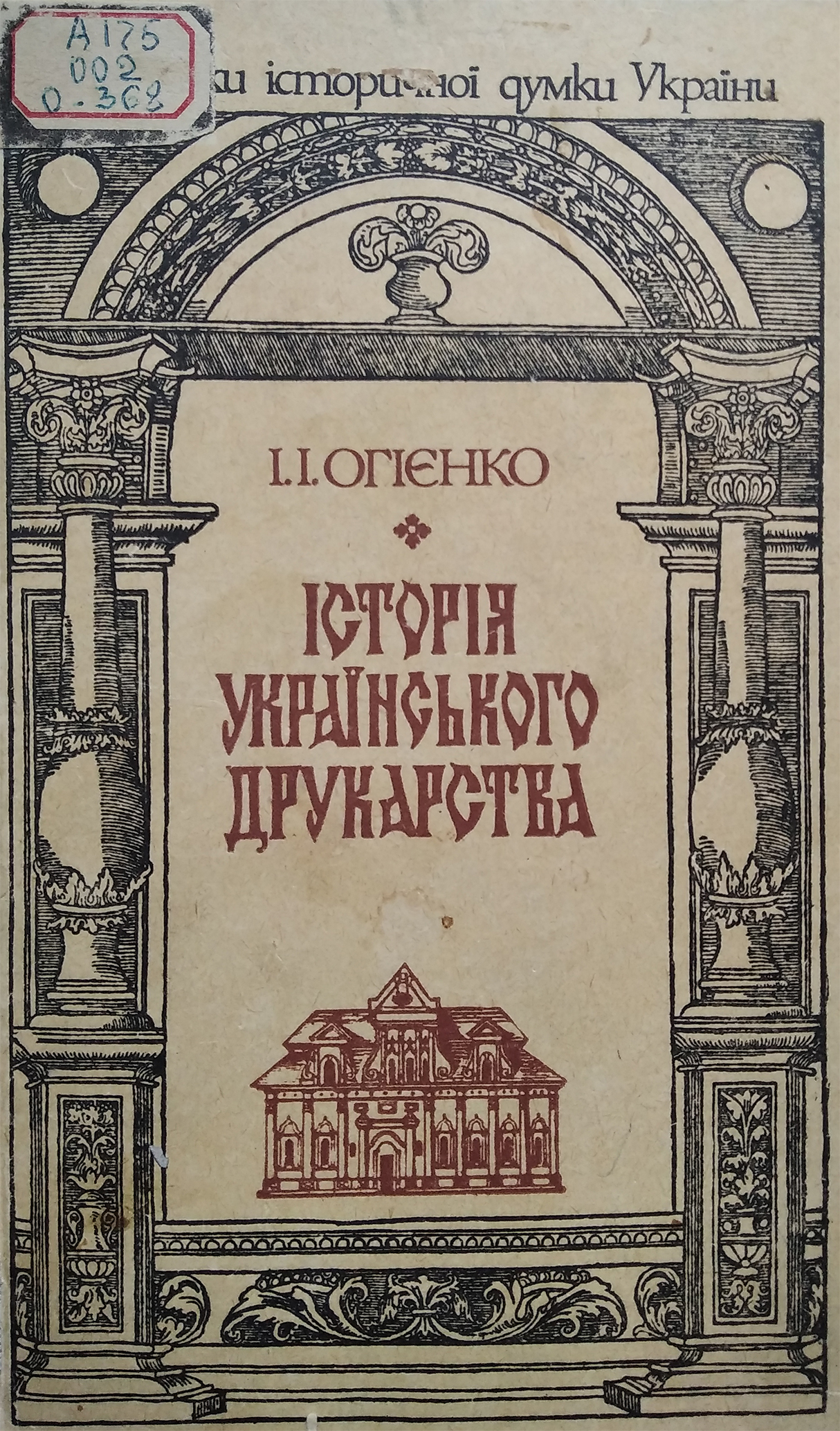 23. Огієнко І. І. Історія українського друкарства / І. І. Огієнко ; упоряд., авт. іст.-біогр. нарису, авт. прим. М. С. Тимошик. – Київ : Либідь, 1994. – 442 с. : іл., портр.