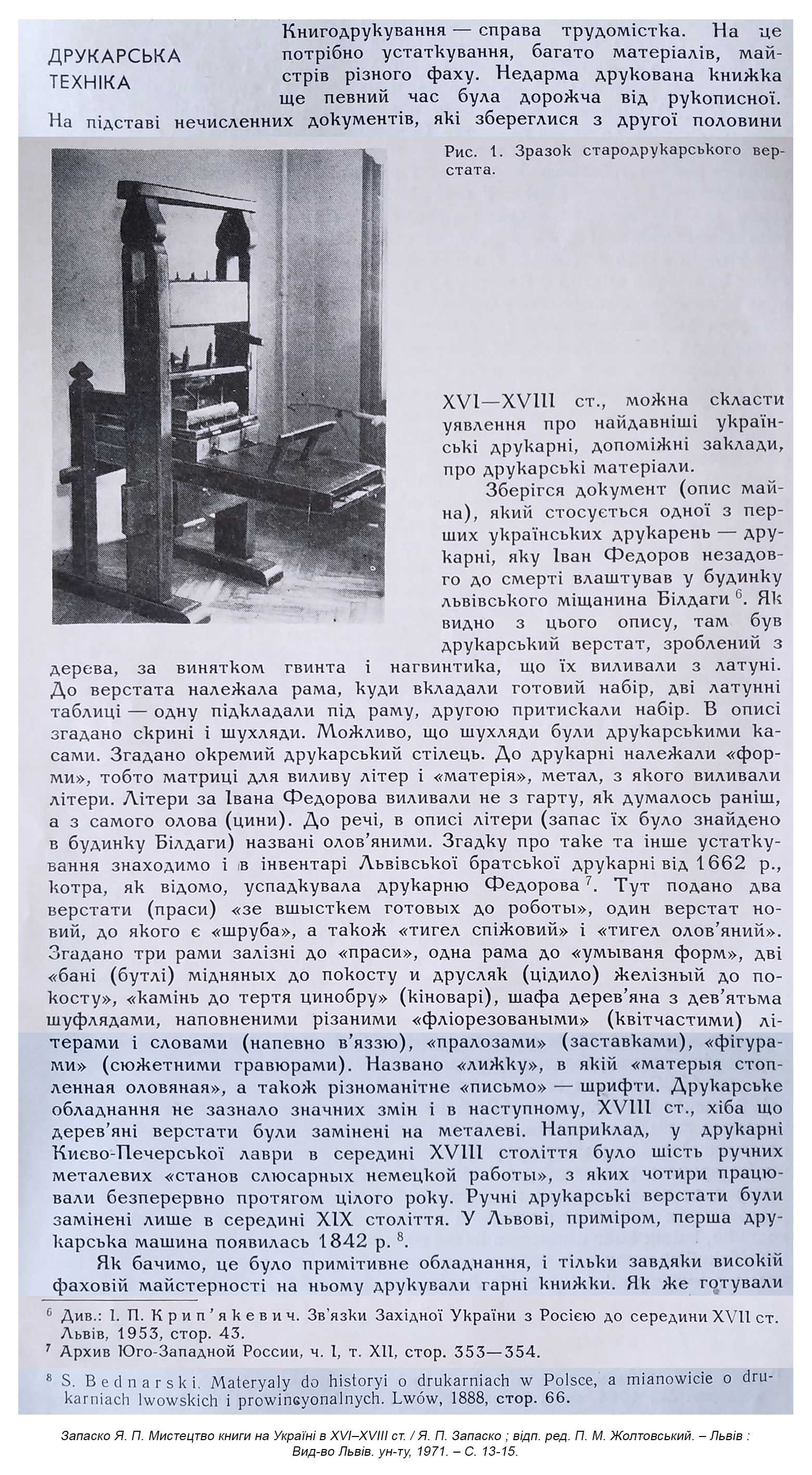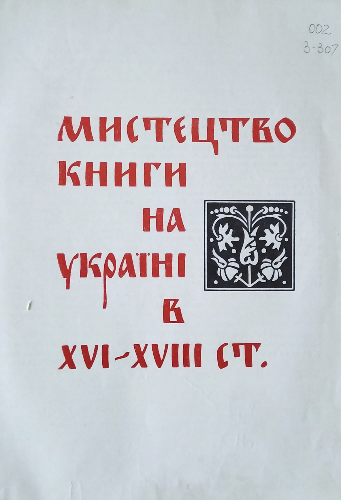 6. Запаско Я. П. Мистецтво книги на Україні в XVI–XVIII ст. / Я. П. Запаско ; відп. ред. П. М. Жолтовський. – Львів : Вид-во Львів. ун-ту, 1971. – 310 с. : іл.