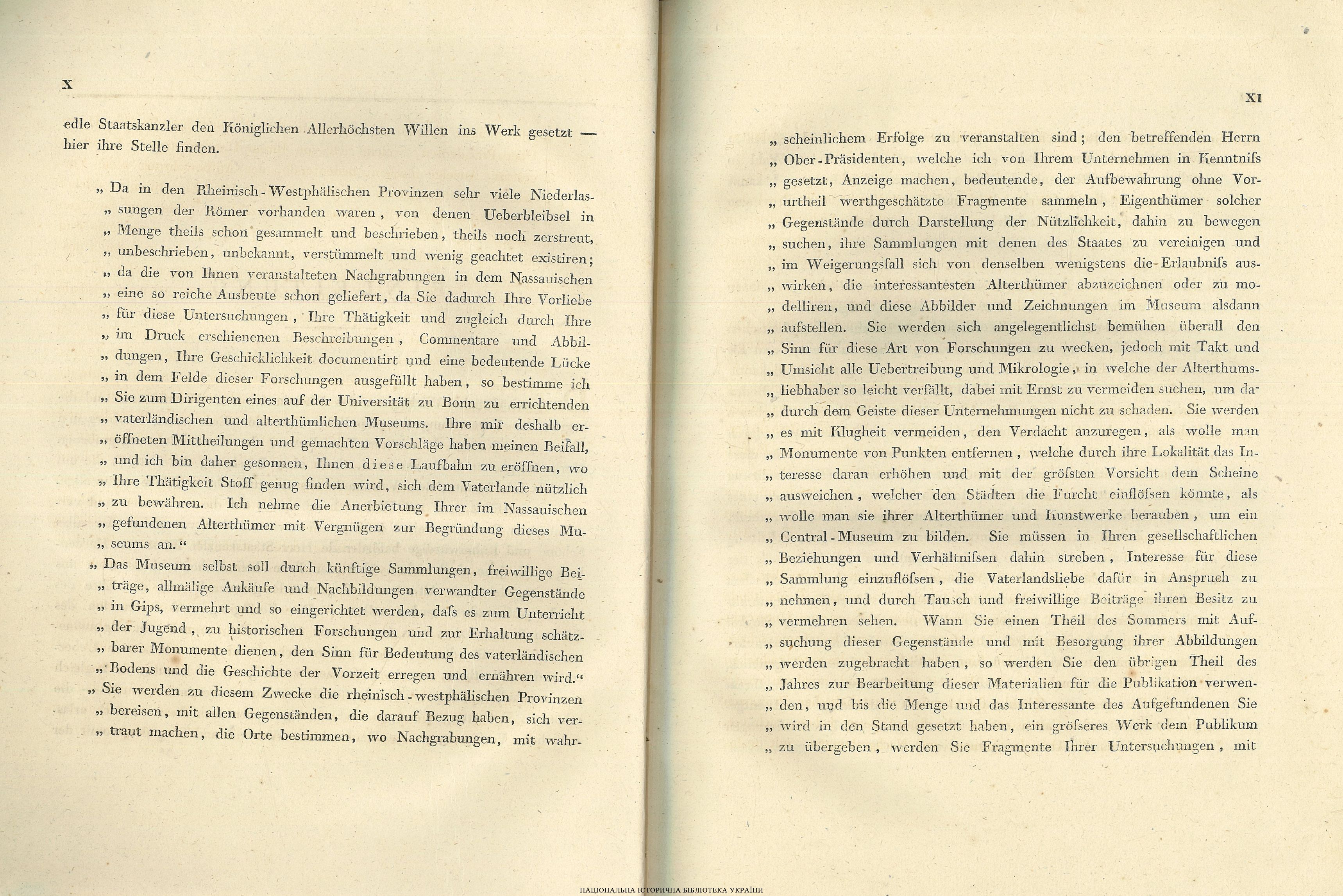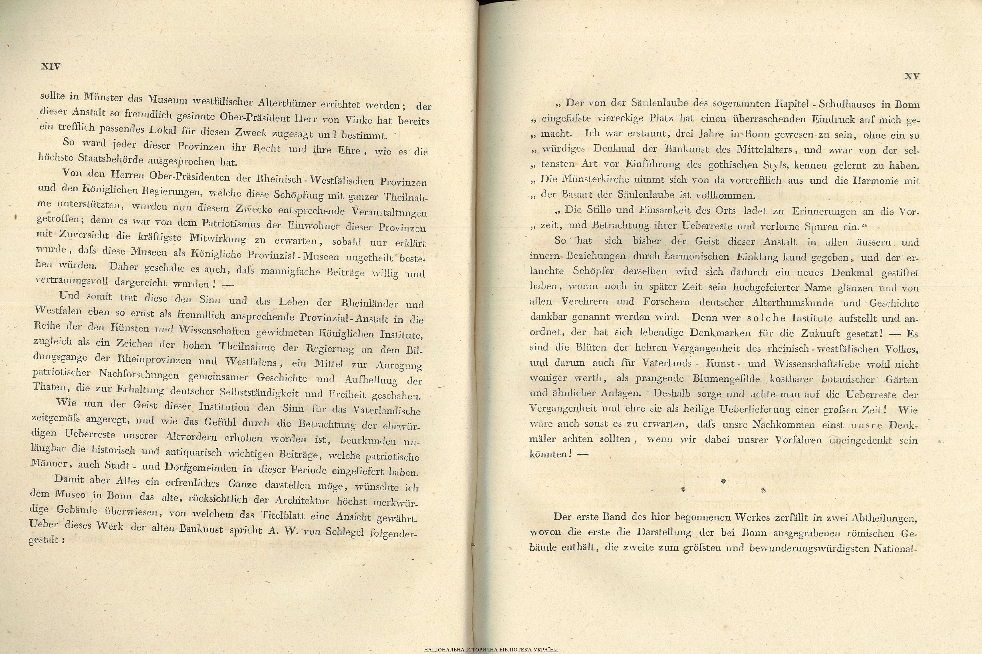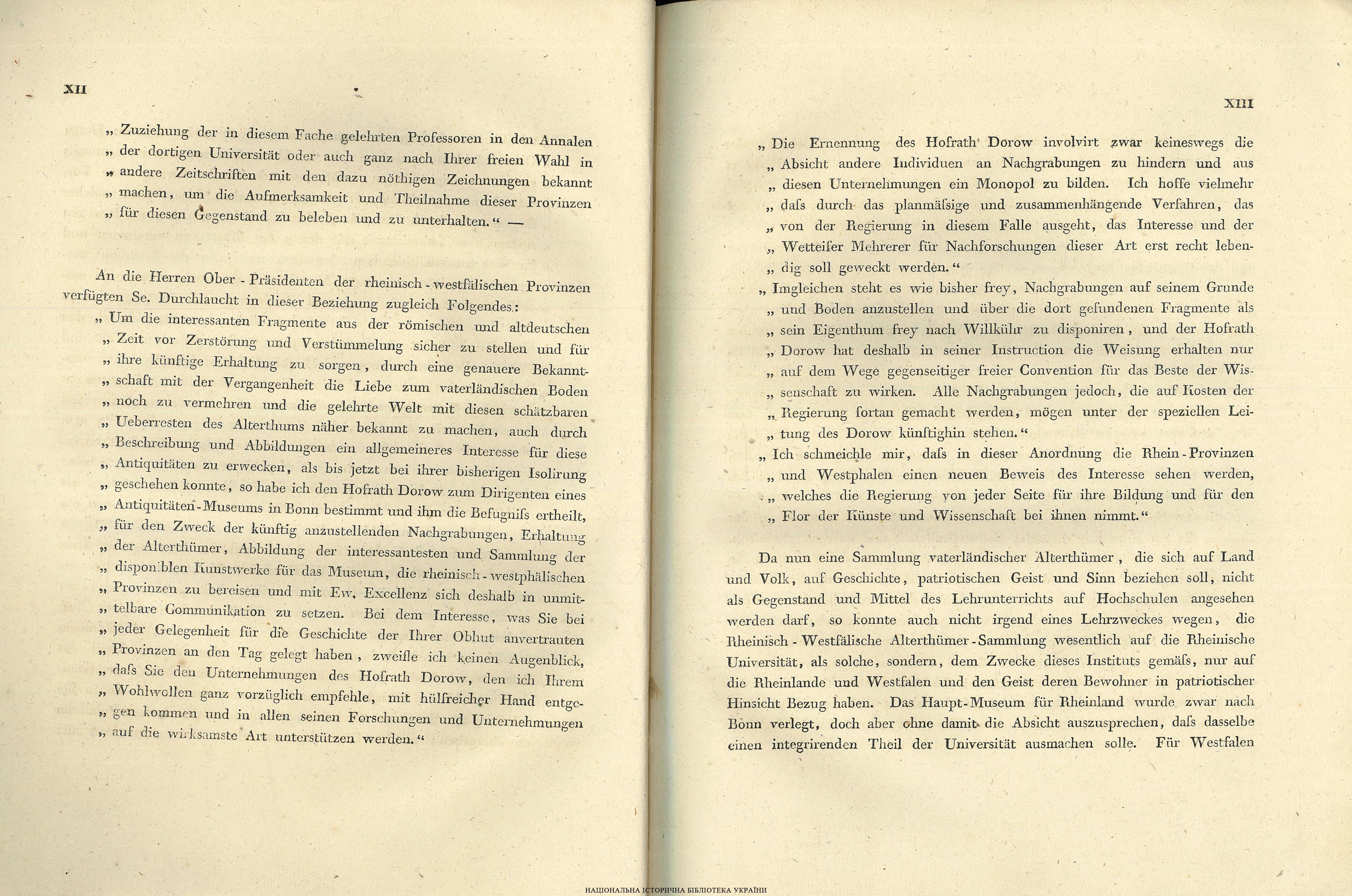 Шановні користувачі! Цьогоріч виповнюється 200 років виданню видатного німецького дипломата, археолога, історика Вільгельма Дорова «Пам'ятки германського і римського часу в Рейнсько-Вестфальських провінціях», 1823 р.. Пропонуємо ознайомитись з видатною постаттю XVIII століття та його внеском в розвиток науки і культури. Видання зберігається у відділі документів іноземними мовами та презентується в рамках щоквартальної рубрики «Книги-ювіляри 2023».