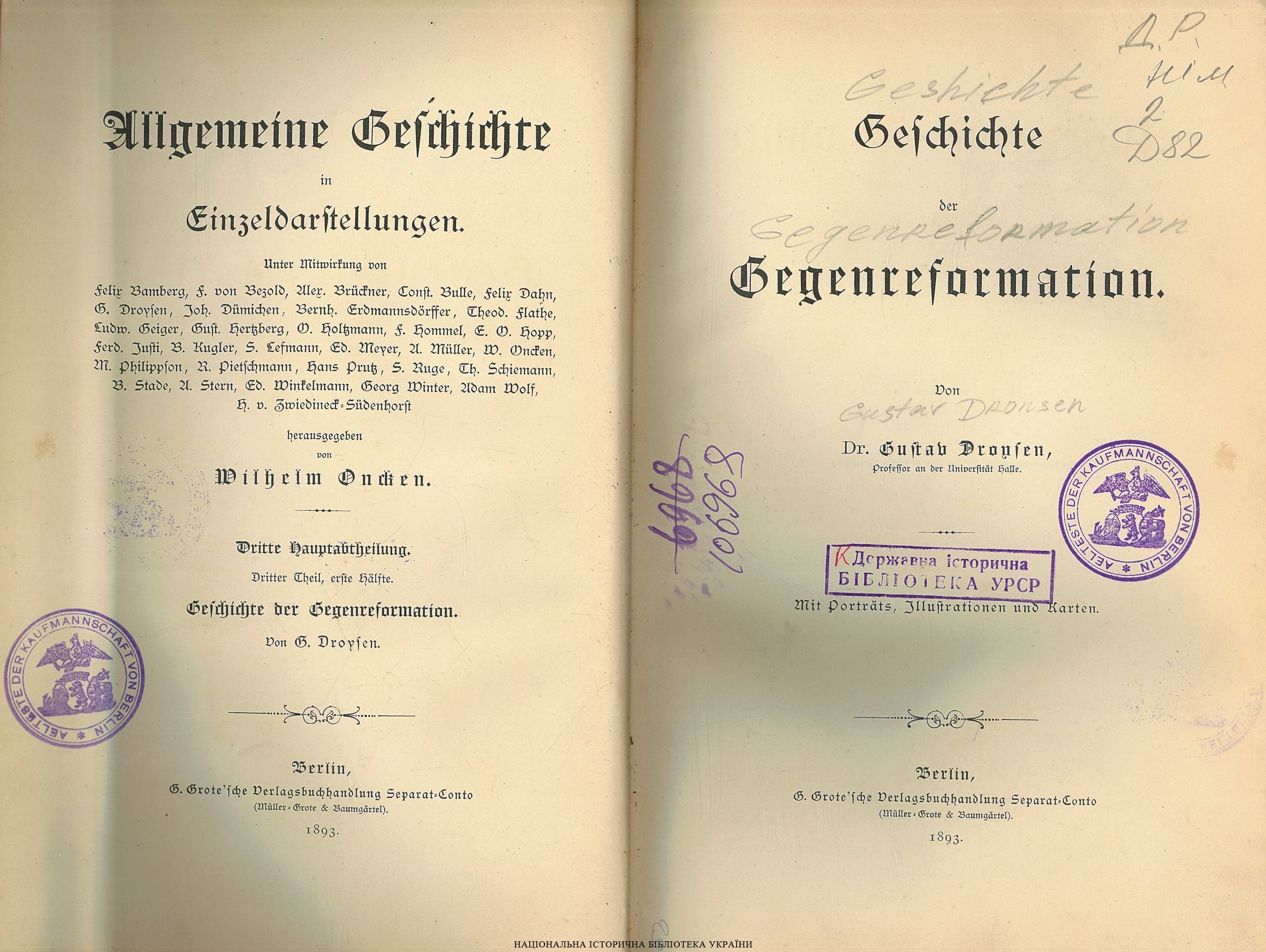 Droysen, Gustav. Geschichte der Gegenreformation [Текст] / G. Droysen. - Berlin : [s. n.], 1893. - 472 s. - Нім.