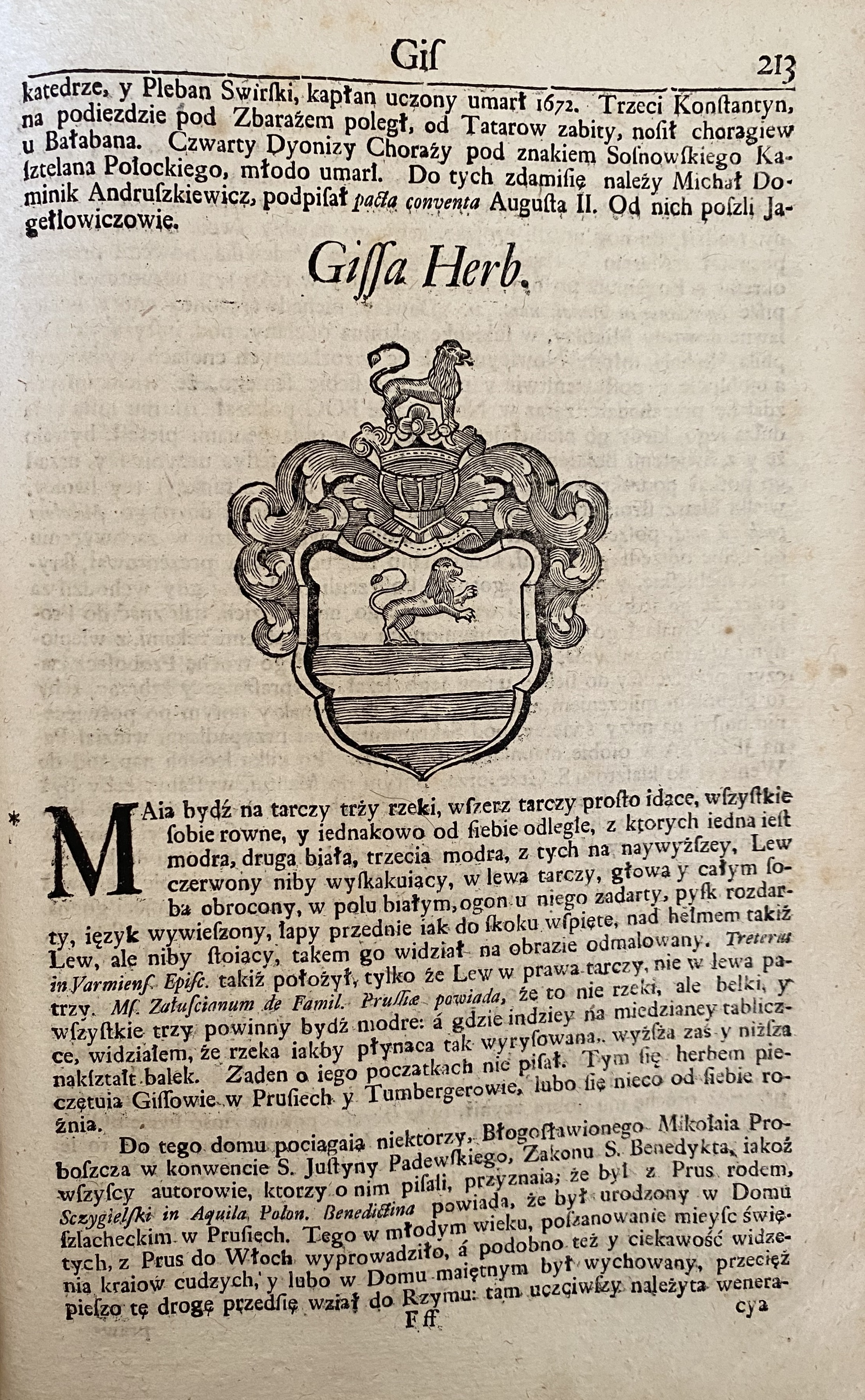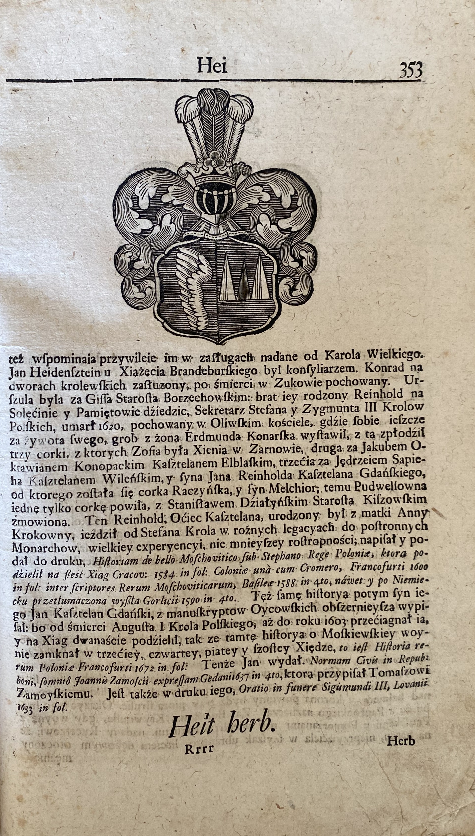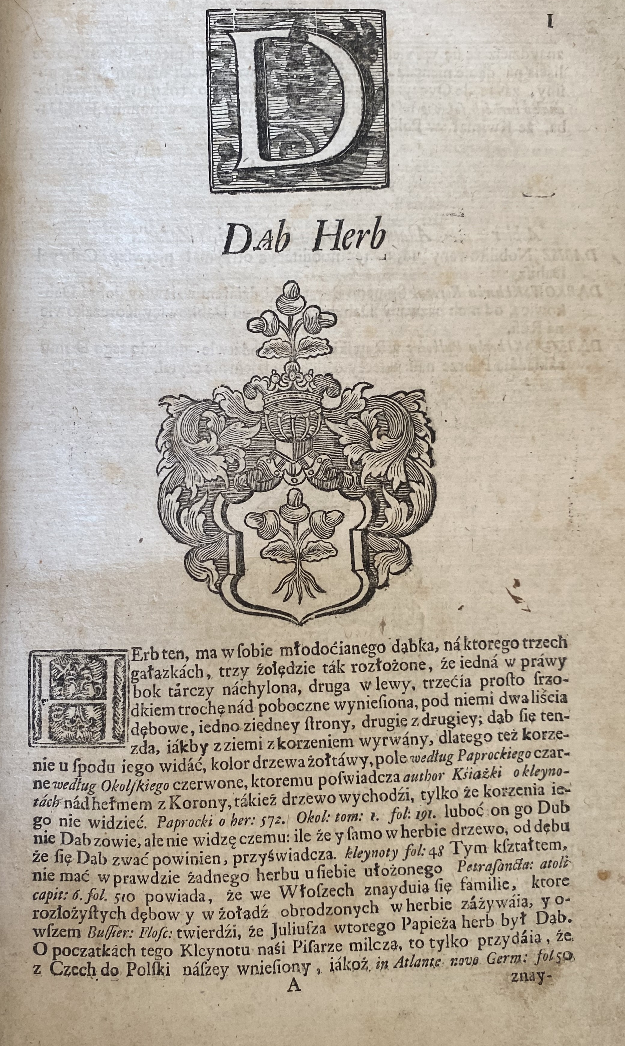 Niesiecki, Kasper. Herby y Familie Rycerskie. Tak w Koronie Iako y Wielkim Xiestwie Litewskim zebrane przez X Kaspra Niesieckiego Soc Iesu [Текст] / K. Niesiecki. - Lwow : Drukarnia Collegium Lwowskiego Soc. Iesu, 1728. - 380, далі стор. відсутні. - Польс.