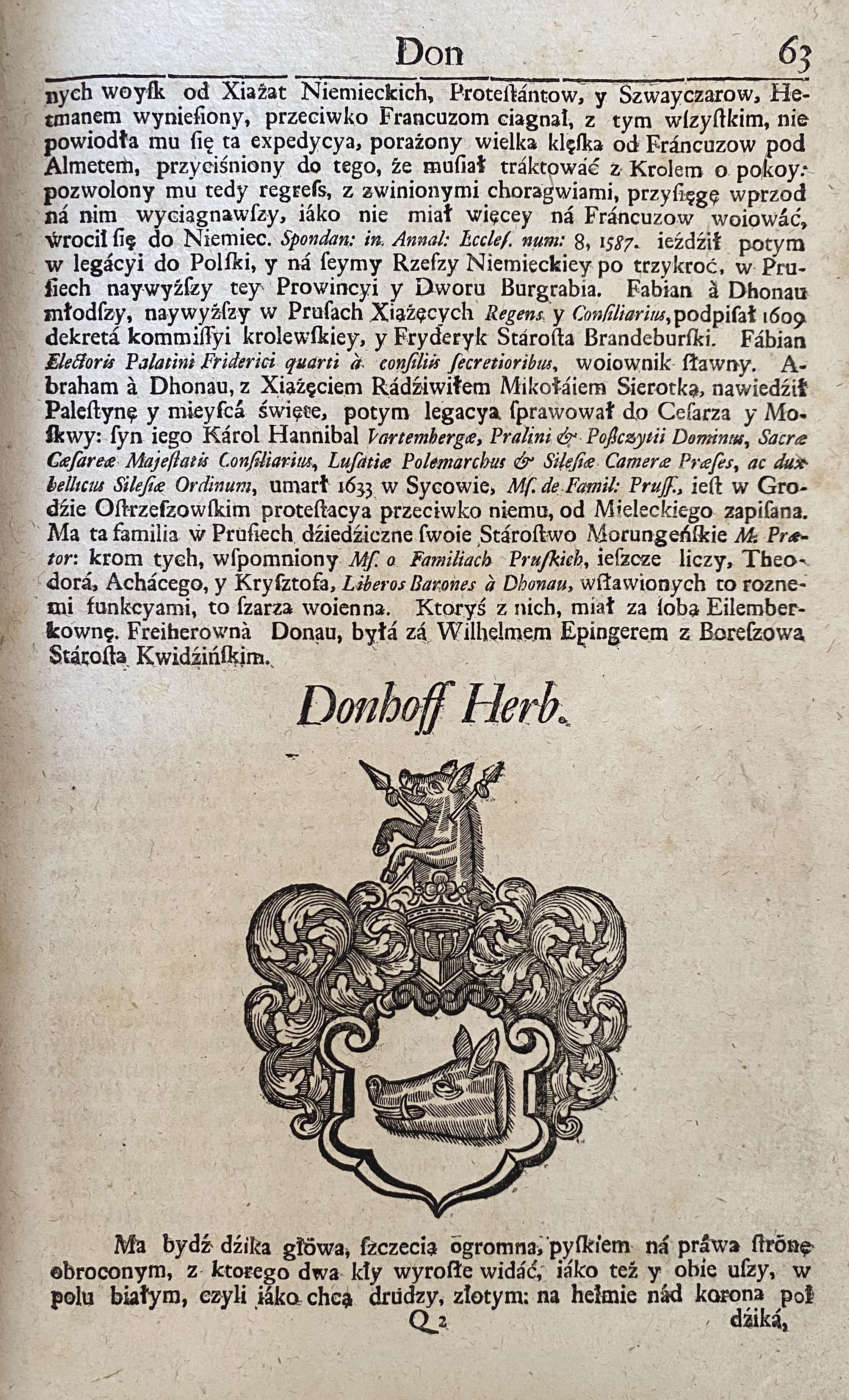 Niesiecki, Kasper. Korona polska przy złotej wolności starożytnemi rycerstwa polskiego i Wielkiego Księstwa Litewskiego klejnotami ozdobiona [Текст] . T. 2. D-K / K. Niesiecki. - Lwow : Drukarnia Collegium Lwowskiego Societatis Jesu, 1738. - 759 с. - Польс.