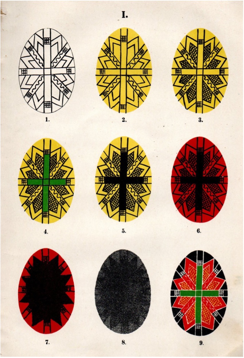 Технологію розпису гуцульських писанок подає В. Шухевич у своїй праці «Гуцульщина» [Шухевич В. Гуцульщина. Ч. 4 / В. Шухевич ; Наукове товариство ім. Шевченка (Львів). – Львів : Накладом наук. т-ва ім. Шевченка, 1904. – С.216 – 227].