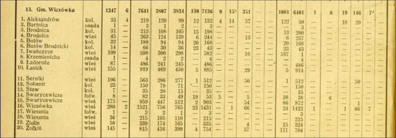 [Skorowidz miejscowości Rzeczypospolitej Polskiej opracowany na podstawie wyników pierwszego powszechnego spisu ludności z dn. 30 września 1921 r. i innych źródeł urzędowych. Tom VIII, Województwo poleskie. Warszawa: Główny Urząd Statystyczny. 1924. С 50. – Електрон. дані. – Режим доступу: https://upload.wikimedia.org/wikipedia/commons/4/41/Woj.poleskie_miejscowo%C5%9Bci_1921.pdf. – Назва з екрана. – Дата перегляду: 25.10.2023].