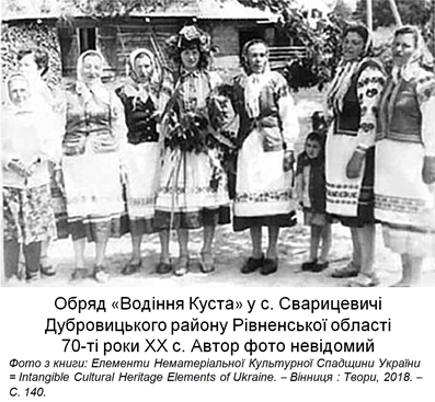 У 2018 році наказом Міністерства культури України № 995 елемент «Традиція обряду «Водіння Куста» у селі Сварицевичі Дубровицького району Рівненської області» було взято під охорону держави та внесено до Національного переліку елементів нематеріальної культурної спадщини України (охоронний номер 014.нкс).