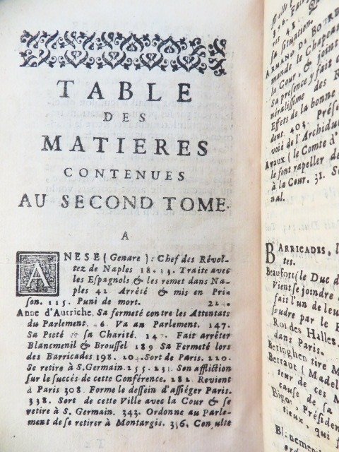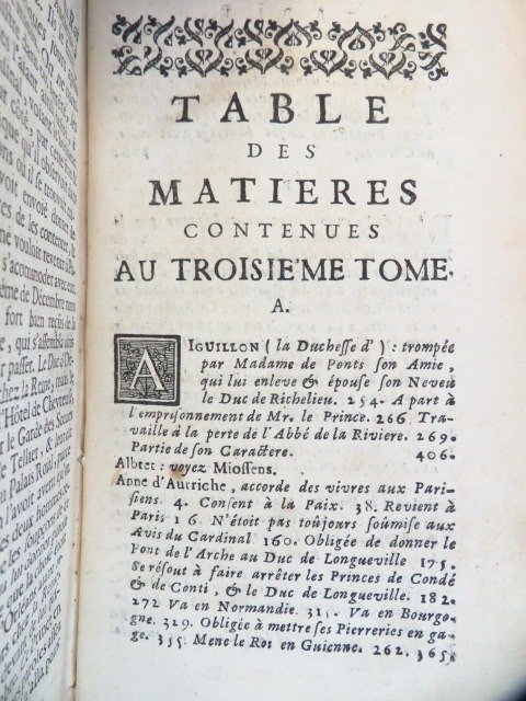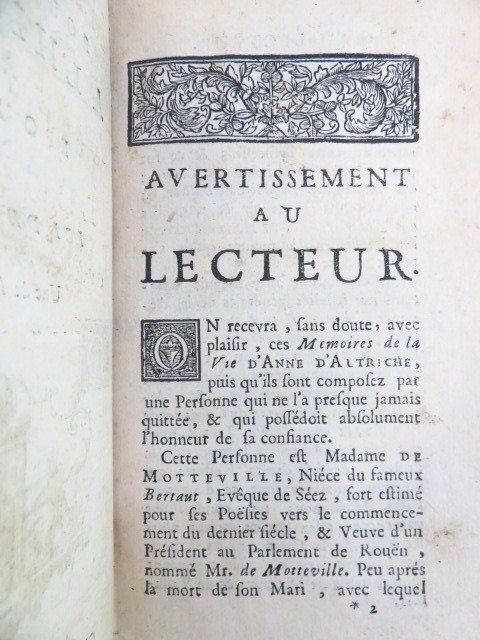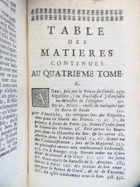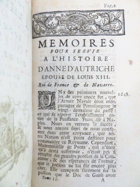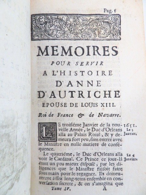 Це перші видання мемуарів, які вважаються одними з найважливіших, що стосуються історії Фронди [серії громадянських воєн у Королівстві Франція між 1648 і 1653 роками, що відбувалися в розпал франко-іспанської війни, що почалася в 1635 році] та початку правління Людовика XIV. «Відомі мемуари супутниці та довіреної особи Анни Австрійської, що охоплюють 1615-1666 роки про королеву, її приватне життя та таємні джерела двору під час Фронди».