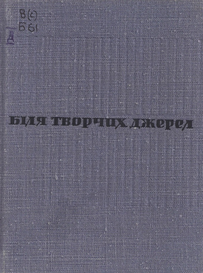 Біля творчих джерел : роздуми письменників про худож. творчість : збірник статей / А. Головко, О. Гончар, І. Вільде та ін. – Київ : Рад. письменник, 1968. – 203 с.