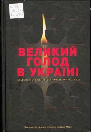- Великий голод в Україні. 1932-1933 років. У 4 т. Т. 1 Свідчення очевидців для Комісії Конгресу США / Ін‑т історії України НАНУ ; ред. С. В. Кульчицький. – Київ : Вид. дім "Києво-Могилян. акад.", 2008. – 838 с. Шифр: М1715-1/9(с2)/В273