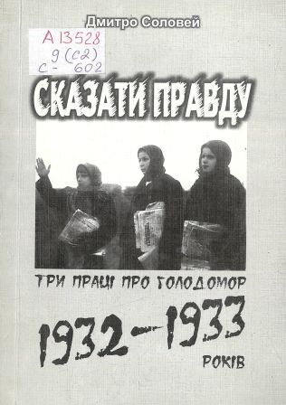 - Соловей Д. Ф. Сказати правду : три праці про голодомор 1932–1933 років / Д. Ф. Соловей ; ред. Ю. Шаповал ; НАН України, Ін‑т політ. і етнонац. дослідж., Центр політології. – Київ ; Полтава, 2005. – 300 с. : іл. Шифр:А13528/9(с2)/С602