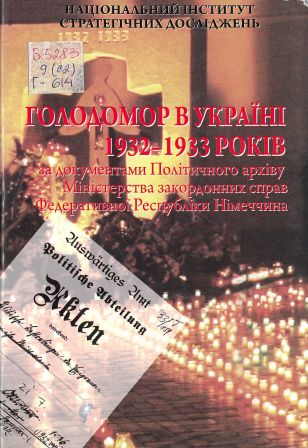 - Голодомор в Україні 1932-1933 років за документами Політичного архіву Міністерства закордонних справ Федеративної Республіки Німеччина / Нац. ін‑т стратег. дослідж. ; упоряд. А. І. Кудряченко. – Київ : НІСД, 2008. – 335 с. Шифр: Б5283/9(с2)/Г614 Анотація: Вперше в Україні оприлюднено копії службових повідомлень німецьких дипломатів урядові своєї країни про Великий Голод в Україні. Унікальні документи свідчать про масштаб гуманітарної катастрофи в Європі 20 ст. Архівні документи розкривають причини, перебіг та наслідки Голодомору.