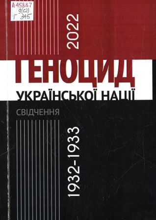 - Геноцид української нації 1932–1933/2022: свідчення / Нац. акад. правових наук України, Міжнар. асоц. дослідників Голодомору-геноциду, Нац. асоц. дослідників голодомору-геноциду українців, Фундація Укр. Голодомору-геноциду (США) ; упоряд. О. О. Стасюк. – Київ : Домбровська Я. М., 2022. – 275 с. : фот. Шифр: А45887/9(с2)/Г345