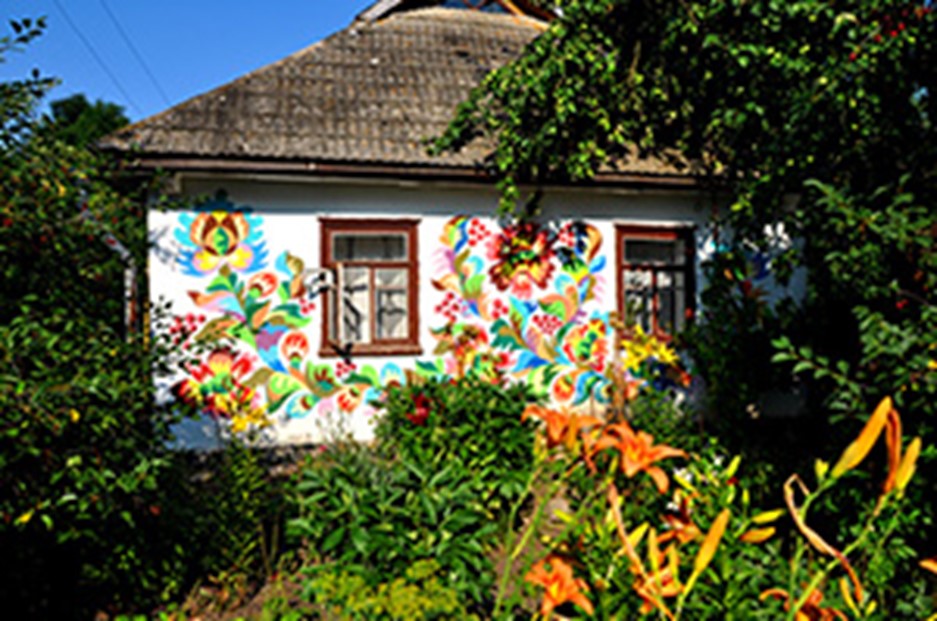 Сільське середовище було завжди мистецьким. Одним із найцікавіших видів народного мистецтва України є народний декоративний розпис – малювання, яким оздоблювали стіни хат та господарських будівель, дерев’яний хатній інтер’єр, знаряддя праці, посуд, іконостаси, вулики, скрині тощо. Саме у південно-східній Волині, на межі з Поділлям, здавна хати були розмальовані рослинними візерунками, які вважались оберегами. Село Самчики Старокостянтинівського району Хмельницької області є колискою, в якій зародився унікальний український декоративний розпис, що згодом отримало назву «самчиківський» за географічною назвою походження. Тут сформувалася особлива традиція декоративного розпису. Талановиті малювальниці виконували стінописи на замовлення, поширюючи це мистецтво в регіоні. Побілені стіни українських хат давали вільний простір для творчості – декорування мальованим барвистим орнаментом. Традиція малювання розвивалася протягом тисячоліть і була тісно пов'язана з сучасною філософією життя, магічними віруваннями та діяльністю. Малюнки на стінах були візитівкою кожної гарної господині. Зовнішні стіни розмальовували в смугу певного кольору, здебільшого у білий, червоний, жовтий. Фарбами були місцеві поклади глини (жовтої, білої), вохр (золотистої, червоної), рослинні барвинки. Зовні хати облямовували орнаментом довкола дверей і вікон на чільній стіні, інколи й причілковій. У середині хат розписи, зазвичай, різноманітніші й багатші. Акцент на комині печі. ЇЇ декілька разів на рік, переважно до свят та урочистих сімейних подій, білили й розмальовували (орнаментували). Темнішою (жовтою, червоною, рудою) підводили черінь, припічок. Розписували також сволок, смугу над вікнами, міжвіконням. Цікаво прикрашали долівку, яку обводили з усіх боків каймою з мотивами хмелика, бігунця або геометризованих елементів, що надавало вигляду килима. Пензлі, щіточки робили «з пса», «з кішки», «з курки», «з проса». Для штампів брали картоплину, буряк, вату тощо. А щоб барвники набули яскравості та не лущилися від дощу, додавали жовток курячого яйця. Розводили фарби молоком, тоді вони добре входили в ґрунт стіни і ставали тривкішими [Пажимський О. Декоративний розпис Старокостянтинівщини: стінопис, мальовки / О. Пажимський // Народне мистецтво. – 2005. – № 1 – 2. – С. 12–14.].