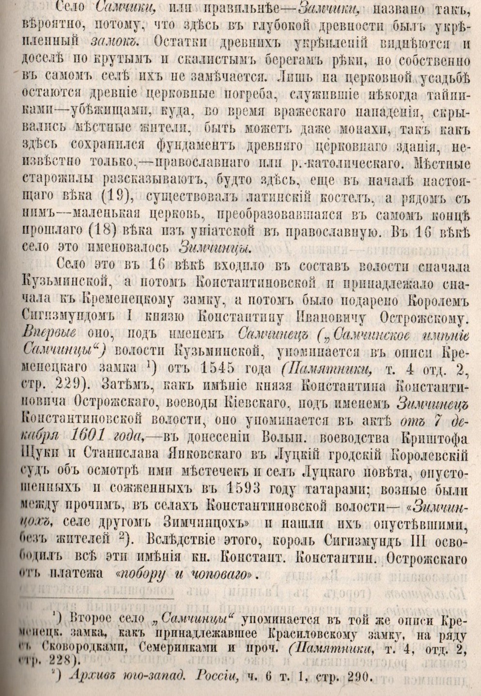 Польський король Сигізмунд І подарував cело Костянтину Івановичу Острозькому, приписуючи до волості Костянтинівської. Після 1620 року Належало князівським родам Заславських, Любомирських, Сангушко. У 1715 році село отримує Ян-Самюель Хоєцький і у 1725 році закладає тут маєток-резиденцію. Наприкінці ХVІІІ ст. полковник Петро Чечель купив село Самчики і кілька інших сіл у Старокостянтинівському повіті. Новий власник почав розбудовувати і прикрашати маєток. Запросив авторитетних і талановитих фахівців з різних країн для будівництва парку. Під час польського повстання 1863 року Якуб Чечель (син Петра Чечеля) загинув, а російський уряд конфіскував маєток і продав його з аукціону у 1867 році. Власником маєтку стає Купріян Ляшков, з 1870 року – Олександр Угрімов, а з 1902 року – М. Шестаков, який продовжив розбудовувати маєток, застосовуючи новітні будівельні матеріали початку ХХ ст. Після 1918 року маєток у Самчиках дивом уцілів.