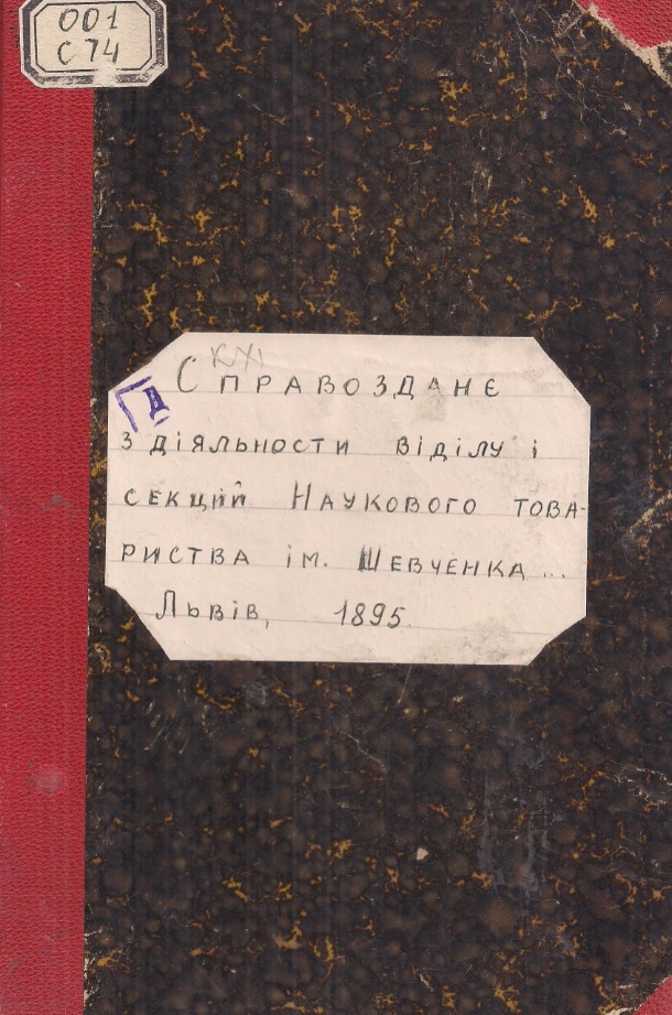 Справозданє з діяльності відділу і секцій Наукового товариства ім. Шевченка у Львові за час від загальних зборів дня 11 мая 1893 - до 31 грудня 1894 р. – Львів : НТШ, 1895. – 16 с.