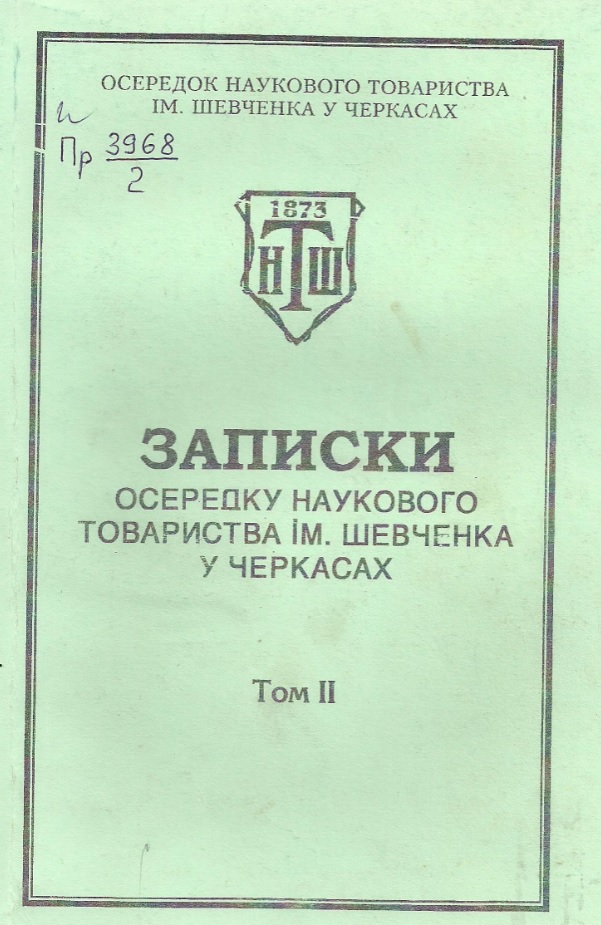 Записки осередку наукового товариства імені Шевченка у Черкасах. Т.1 : Праці історично – філософської, політологічної, філологічної та культурологічної секцій / Осередок наукового товариства імені Шевченка у Черкасах. – Черкаси, 2002. – 167 с.