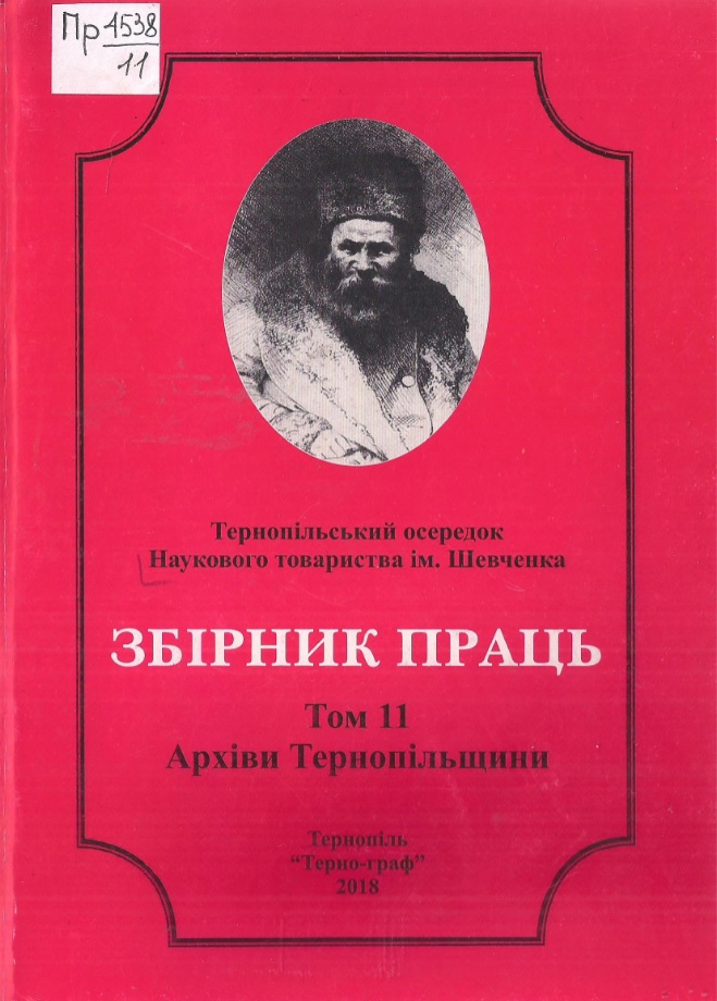 Збірник праць : Т. 11. Архіви Тернопільщини / Тернопільський осередок Наукового товариства ім. Шевченка / відп. ред. М. Андрейчин, ред. тому Е. Бистрицька. – Тернопіль, 2018. – 335 с.