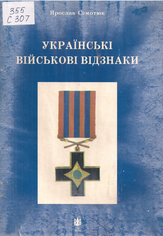 Семотюк Я. Українські нагороди : ордени, хрести, медалі, відзнаки, та нашивки / Я. Семотюк ; Наукове товариство ім. Шевченка в Канаді. – Торонто, 2004. – 64 с. : фото, іл.