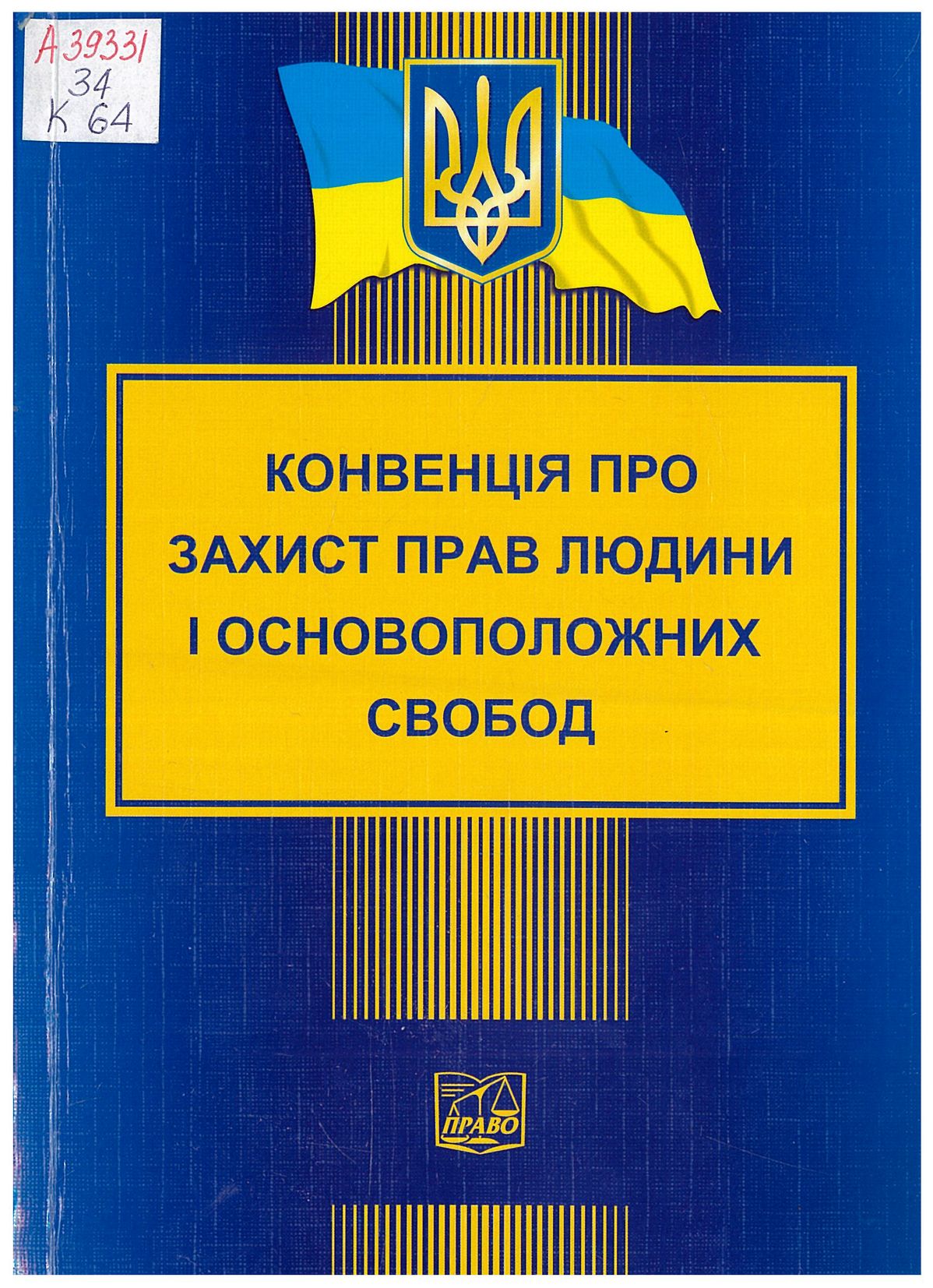 Конвенція «Про захист прав людини і основоположних свобод». Застосування в Україні: офіцій. вид. / М-во юстиції України. – Київ, 2006. – 176 с.