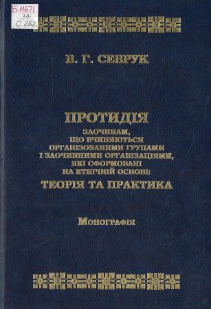 Севрук В. Г. Протидія злочинам, що вчиняються організованими групами і злочинними організаціями, які сформовані на етнічній основі: теорія та практика : монографія / В. Г. Севрук ; М-во внутрішніх справ України, Нац. акад. внутрішніх справ України. – Київ : Людмила, 2022.– 1091 с. Шифр : Б11671/34/С282/КУ