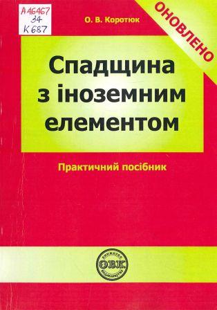Коротюк О. В. Спадщина з іноземним елементом : практ. посіб. / О. В. Коротюк. – Київ : ОВК, 2023. – 239 с. Шифр : А46467/34/К687/ЧЗ.
