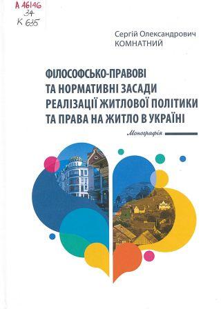 Комнатний С. О. Філософсько-правові та нормативні засади реалізації житлової політики та права на житло в Україні : монографія / С. О. Комнатний ; Київ. ун-т ім. Б. Грінченка. – Київ : Київ. ун‑т ім. Б. Грінченка, 2022. – 341, [1] с. Шифр : А46146/34/К635/КУ