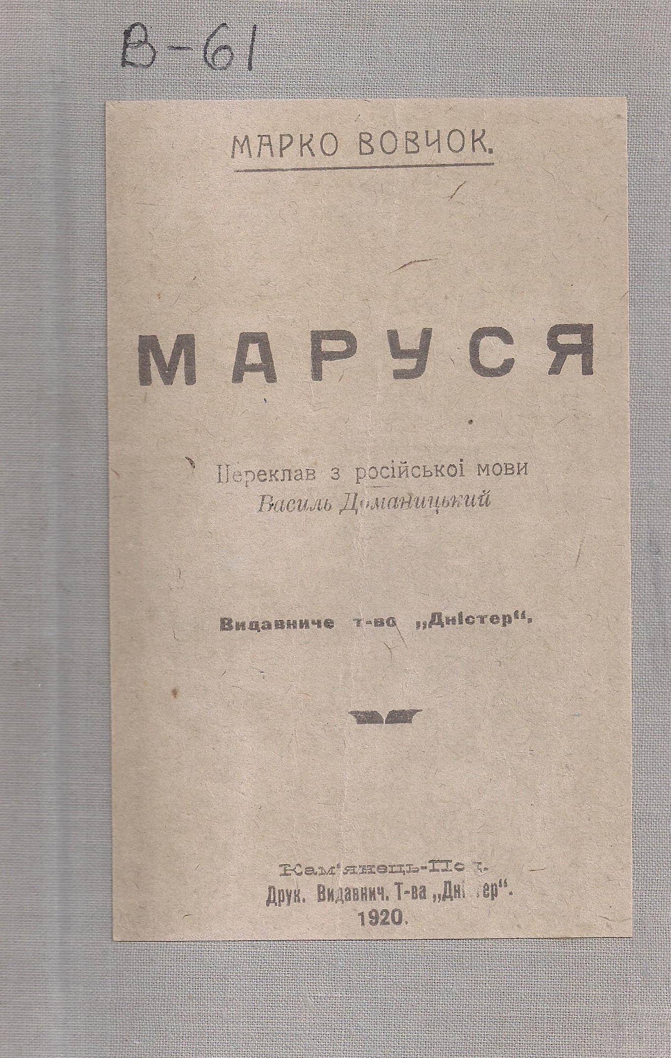 Вовчок М. Маруся: пер. з рос. мови / Марко Вовчок. – Кам’янець на Поділлю : Дністер, 1920. – 132 с.