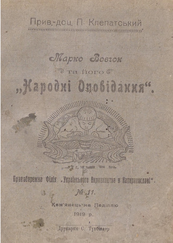 Клепатський П. Г. Марко Вовчок та його “Народні оповідання” / П. Г. Клепатський. – Кам’янець на Поділлю : Тухбиндер, 1919. – 40 с.