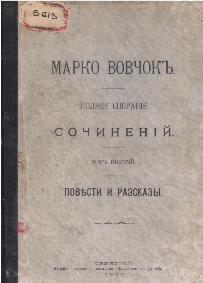 Вовчок М. Полное собрание сочинений . Т. 6 . Повести и рассказы / М. Вовчок. – Саратов : Кн. магазин “Саратовского Дневника”, 1896. – 323 с.