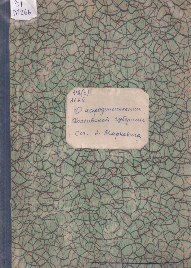 Маркевич Н. А. О народонаселении Полтавской губернии / Н. А. Маркевич. – Киев : Унив. тип., 1855. – 52 с. : 59 л. табл.