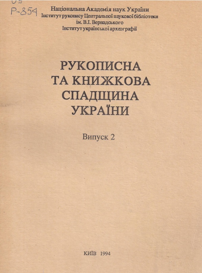 Історична спадщина у світлі сучасних досліджень / НАН України. Ін-т історії України ; ред.: В. А. Смолій, Ю. А. Пінчук. – Київ, 1995. – 189 с.