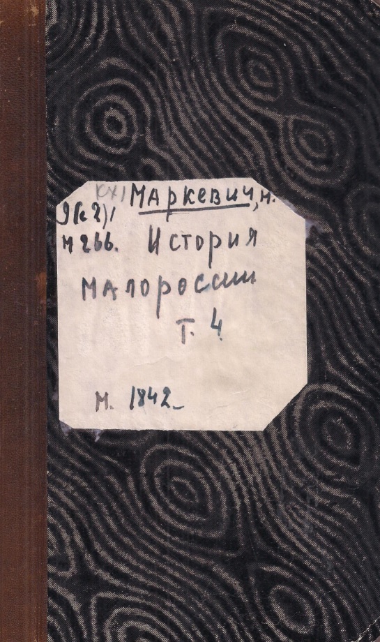 Маркевич Н. А. История Малороссии. Т. 2 / Н. А. Маркевич. – М. : Тип. Августа Семена, при Императорской Медико-хирургической Академии, 1842. – 688 с.