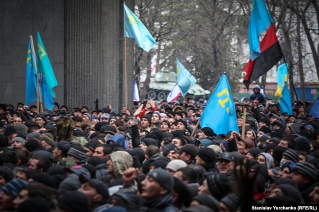 Псевдореферендум, який блокували кримські татари та інші проукраїнськи налаштовані жителі півострова, відбувся 16 березня 2014 року. Морський тральник «Черкаси» ВМС України – остання військова частина, що тримала український прапор у Криму, захоплена 25 березня з цього дня Автономна Республіка Крим і місто Севастополь окуповані збройними силами росії.