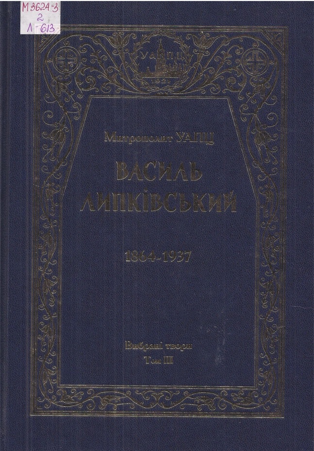 Липківський В. (митрополит УАПЦ ; 1864 – 1937). Вибрані твори . Т. 3 / В. Липківський ; упоряд. І. М. Преловська ; НАН України. Ін-т укр. археографії та джерелознавства ім. М. С. Грушевського. – Київ : Українські пропілеї, 2018. – 306 с.